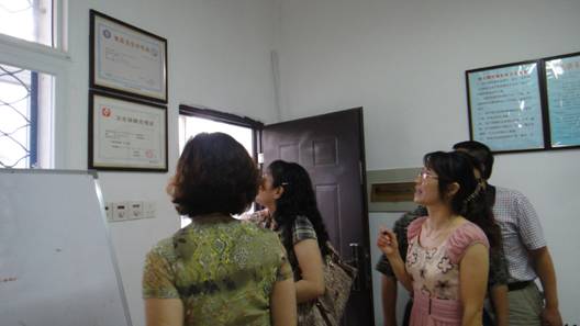 汇报会上,毕翠萍首先对市区教育局检查组领导的到来表示热烈欢迎。接着她就幼儿园现状,对幼儿园的卫生工作、饮食安全工作、办学理念、未来幼儿园的发展等方面做了客观而详实的汇报。我校幼儿园自建园以来,在大学各级领导的关心支持下,幼儿园软硬件建设得到长足的发展,特别是近来年,幼儿园依托大学优质教育资源办学和雄厚的财力,加强幼儿园师资的培养和培训,整合师资资源,规范办学管理,逐步形成了完善的办学体系。 检查组在听取汇报后,实地察看了幼儿园的场地、办公设备、教师上课、环境布置等情况。 最后,刘月红对我校幼儿园的建设和办学成绩给予充分肯定,就当前幼儿园的工作和我校幼儿园今后发展的路子提出了建设性意见和建议。她还希望我校幼儿园需加强对外交流,进一步加大硬件投入,使之越办越好,为学校老师特别是年轻老师解除后顾之忧。