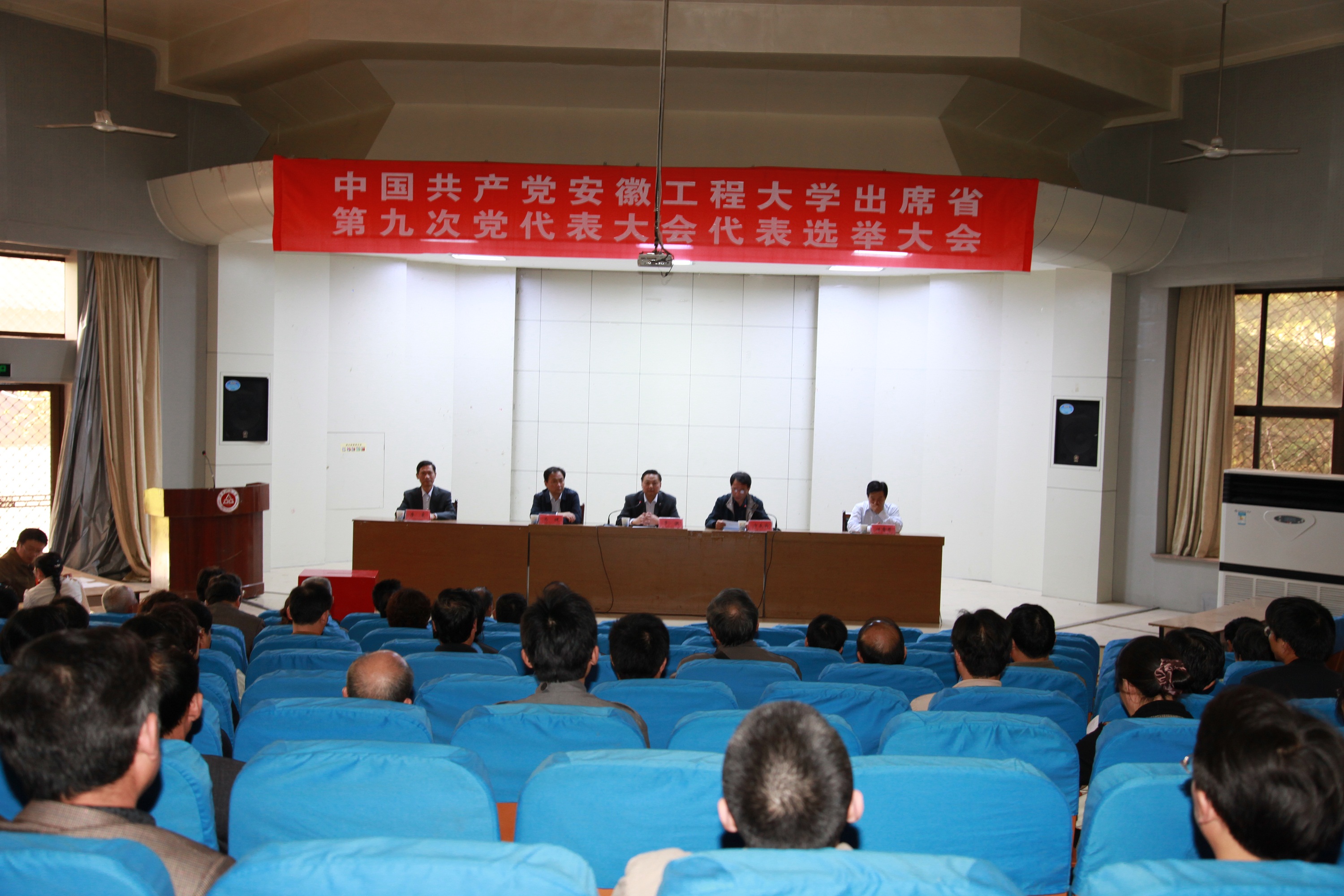 中国共产党安徽工程大学出席省第九次党代表大会代表选举大会于9月21日下午14:45分在校学术报告厅隆重召开。校领导干洪、方友实、马健、汪奇燕、李震出席并在主席台就座,校党委委员和本届党代会代表参加了会议。大会由校长干洪主持。