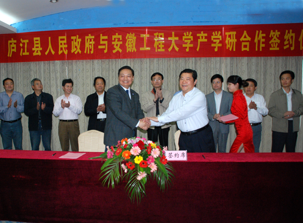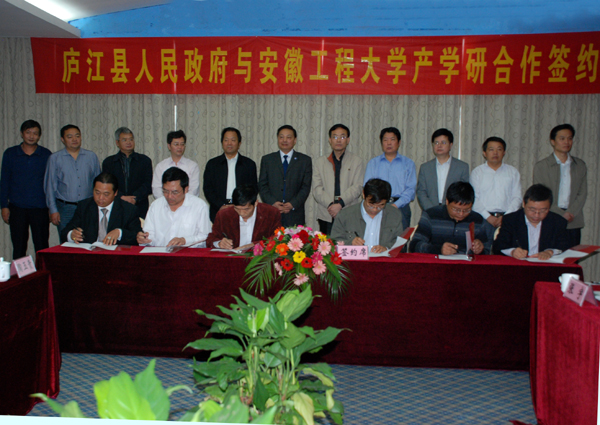 会上,夏明生致辞并介绍了庐江工业经济发展情况。干洪代表学校感谢庐江的热情接待,认为学校和庐江县有巨大的合作前景,介绍了安徽工程大学的科研成果及整体情况,提出了科研资源共享、实验室开放的理念,希望通过双方共同努力,将校、县合作引向深入,实现务实、高效、互利互赢、共同发展;王民生对我校的到来表示衷心感谢和热烈欢迎,他介绍说,庐江并入合肥以后,将迎来新一轮大发展机遇,庐江县希望加强与高校合作,深层次推进产学研结合,共享科技创新成果。