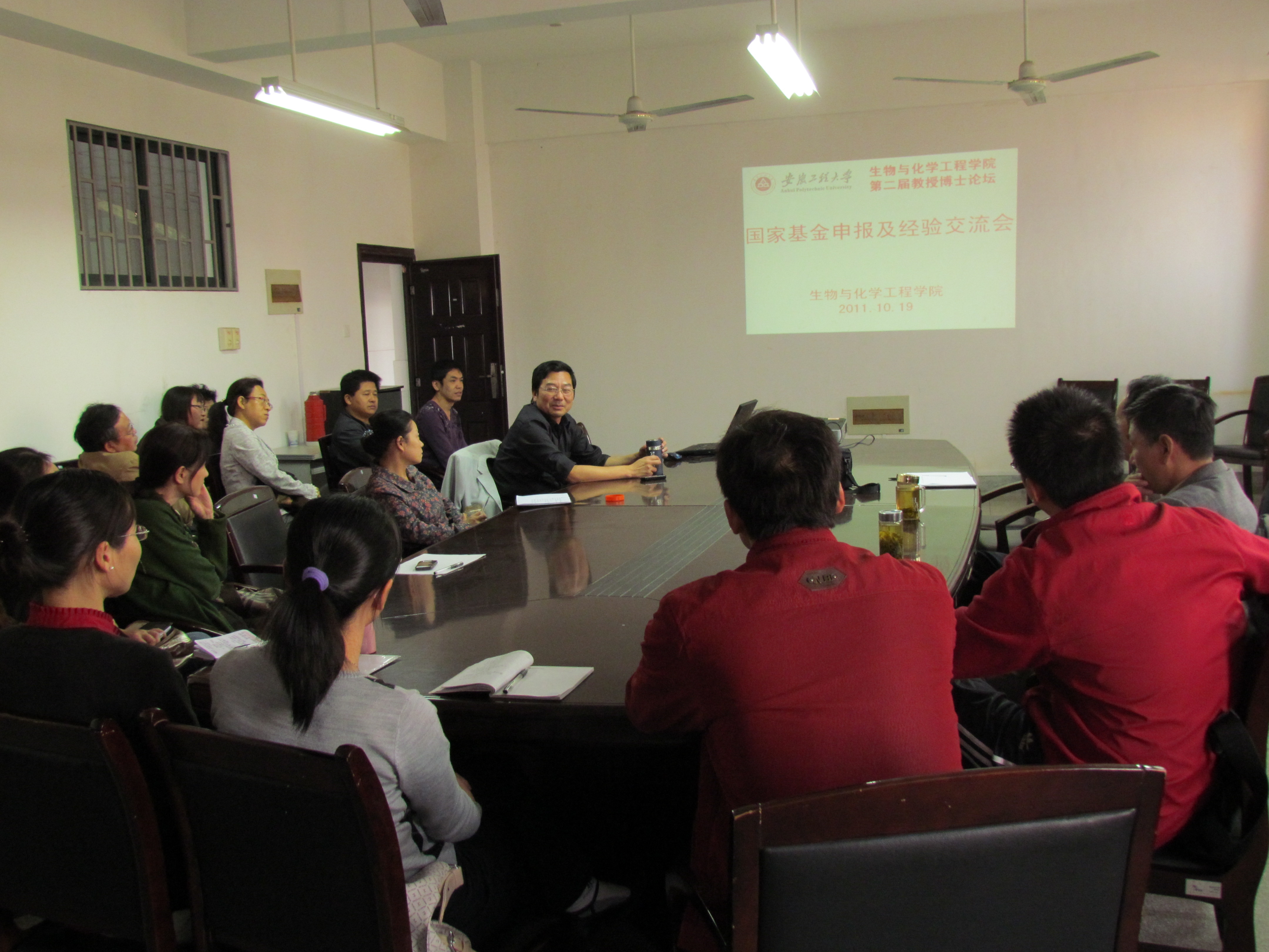 10月19日下午,在学院会议室召开了生化学院2012年国家基金申报动员暨经验交流会。会议由学院院长徐建平教授主持,学院副高以上职称和具有博士学位教师等参加了会议,部分具有硕士学位的教师也积极参加了会议。