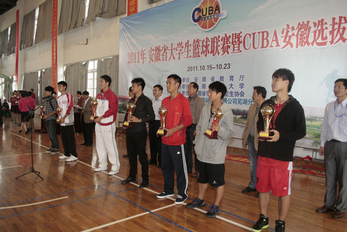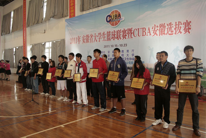 由安徽省教育厅主办、安徽工程大学承办、安徽省学校体育卫生协会协办的“2011年安徽省大学生篮球联赛暨CUBA安徽选拔赛”于10月22日中午在校体育馆隆重闭幕。