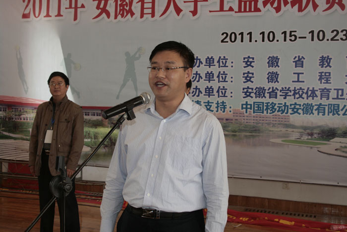 出席闭幕式的领导和嘉宾有安徽工程大学副校长叶常林、安徽省教育厅体卫艺处处长宣进、省教育厅主任科员丁仁能、省学校体育卫生协会副秘书长朱保成、校办主任郭兴众、体育学院院长方新普、书记文才新等。闭幕式由安徽省学校体育卫生协会常务副理事长陈钦主持。