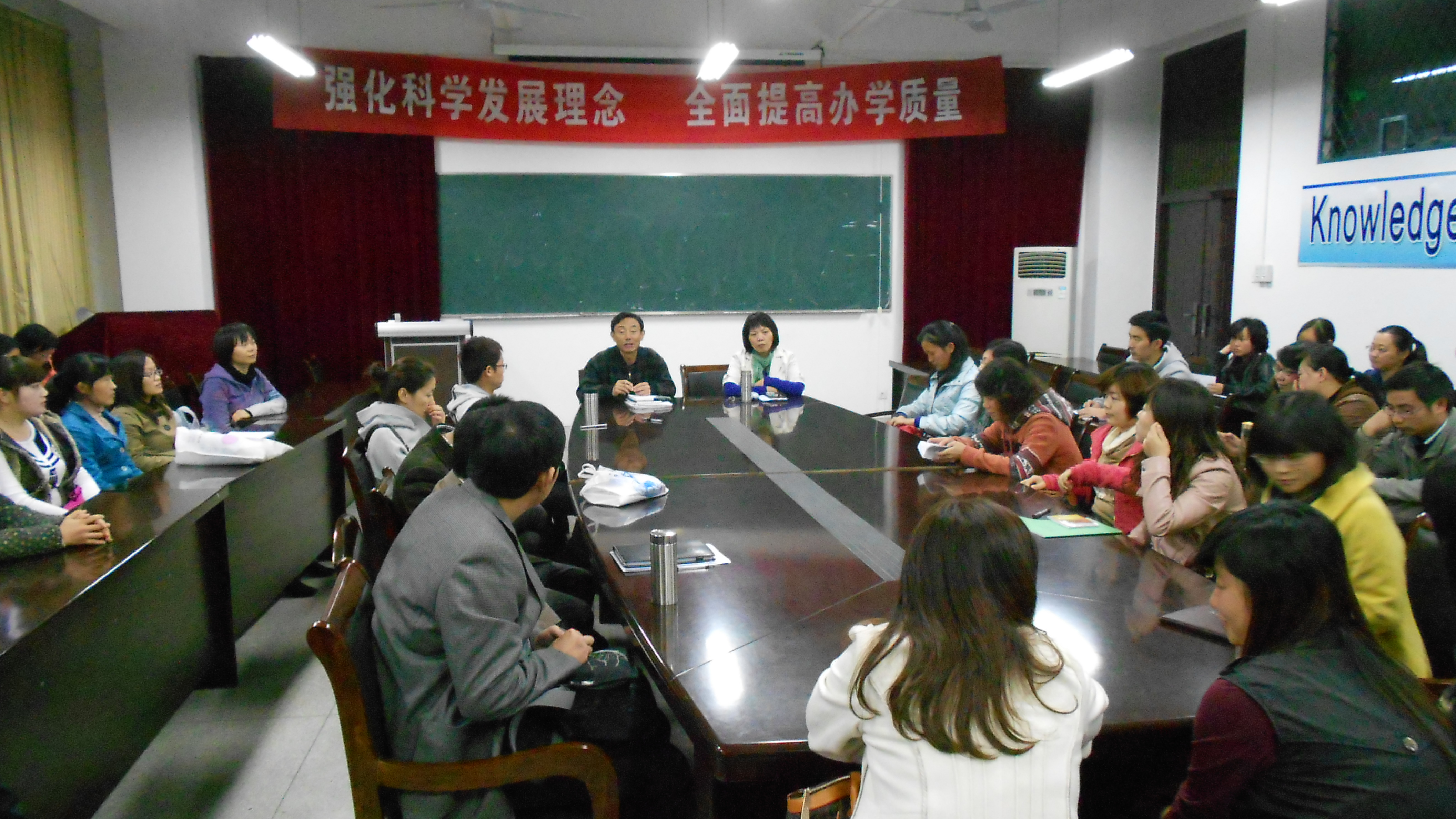 院长刘进结合学校发展和英语教学改革大局,从教学、科研以及课堂教学管理等方面对青年教师提出了几点要求:一是要向课堂要效益。抓好课堂上的每一分钟,要用积极的、正面的、阳光的事例去引导学生,从关心学生的角度来教育学生,用人格魅力来感化和影响学生;二是强化课堂管理。针对当前学生在旷课、迟到、早退、不遵守课堂纪律等不良现象,在课堂上,要大胆管理、善于管理,要逐步培养和提升自己的教学管理能力,不要因为害怕“得罪”少数学生,就不敢管理。要从爱学生的角度去管理学生,事实证明只有真正敢管的老师才能赢得学生的尊重,也只有这样的老师才能深受广大学生的欢迎。三是提升自身教学水平。青年教师是学院教学的中坚力量,但是在教学上仍然有许多方面需要提高,不但要注意每堂课的质量,更要整体把握每学期教学内容体系,注重教学重点难点的讲解方法,还要重视学生学习能力和创新思维的培养。四是要规划人生,树立目标。每个青年教师都应该制定三年个人发展规划,每一年都要确立分期目标,学院将定期检查,要从长远的发展去思考个人发展,主动参与竞争,逐步实现个人的发展目标。最后,刘院长说,教师是人类灵魂的工程师,我非常热爱教师这个职业,它已经成为我生命中的一部分。作为青年教师,你们要严格要求自己,以身作则,用自己的实际行动影响学生,在教书育人实践中实现自己的人生价值。