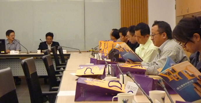 考察团还先后走访5所台湾高校,认真听取了各校负责人的办学情况介绍,参观了学校的办学环境及设计专业的成果。其中印象特别深刻的是:云林科技大学设计学院,立足于设计教学服务当地产业,三栋教学研究大楼,齐全的教学实务空间,像工厂一般的设备优良的实验工场,令人震撼;成功大学工业设计系,国际化的视野,科技和设计的高度融合,培养设计领导者的教育理念,特色化的招生方式,都令人耳目一新;台北艺术大学,集戏剧、舞蹈、音乐、美术学科为一体,校园自然风光与建筑融为一体,相得益彰,让人流连忘返;东方艺术学院,教师办公室设立学生辅导空间,所属福田繁雄设计艺术馆的齐全收藏,无论对教学还是研究都有很大的价值。代表团还针对两岸的设计教学、文化创意等方面问题与台湾各高校师生进行了愉快的讨论和交流。
