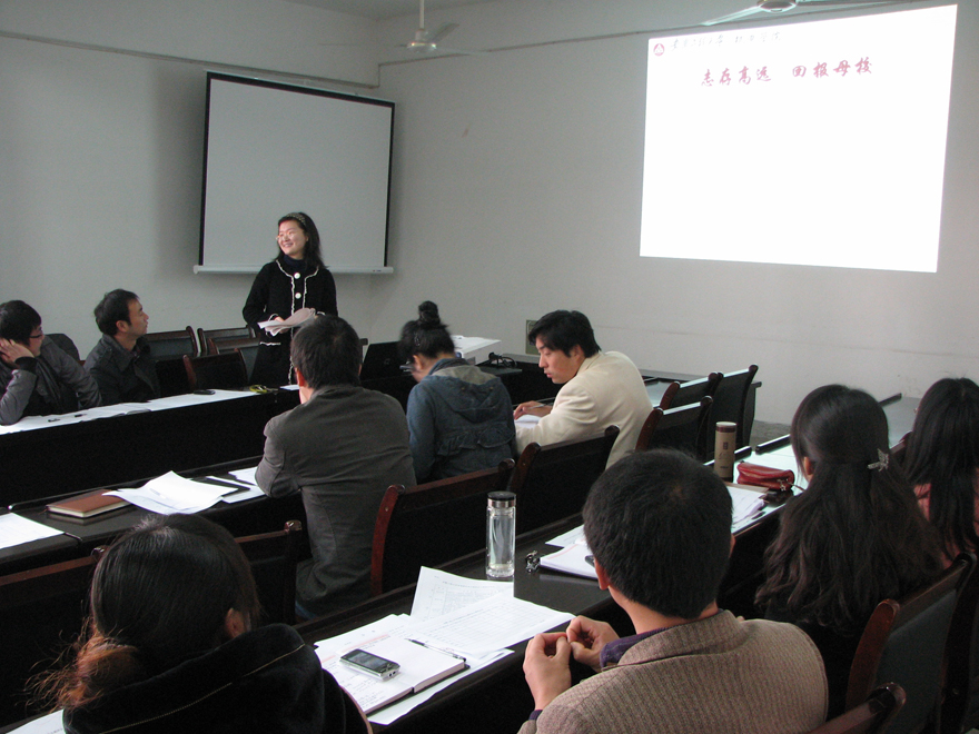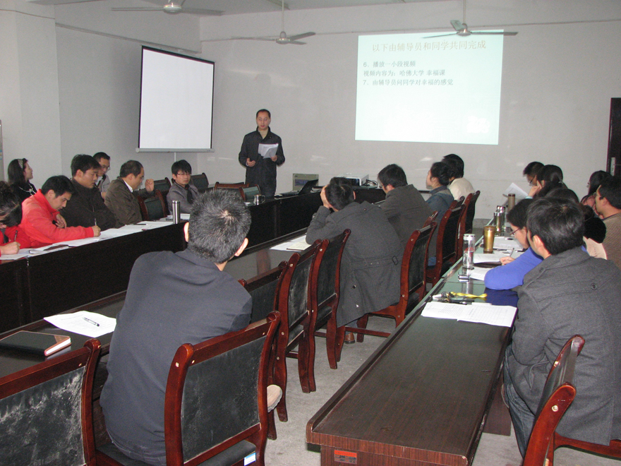 首先,辅导员高潮老师以《感恩父母》为主题,阐述感恩父母不能等待;接着马琳珠老师以《学会感恩,放飞希望》,传达2008级毕业生的心声;黄江胜老师以不同的方式帮同学解决《面对毕业,我们如何抉择?》的职场困境;吴晓老师紧紧围绕《和谐寝室,快乐同住》主题,帮助同学学会和谐相处,达到共建文明寝室目标;仵广海老师告诉同学,懂得《感恩》,就应该用实际行动回报父母、回报社会、回报祖国;盛洁老师的《阳光心态,精彩人生》,主题鲜明,立意新颖,“只要你能播种阳光心态,就可以收获精彩人生”;周源老师以《积极心理学》为题,分析大学生心理现状,准确的提出解决方案;最后,朱文明老师感情真挚、内容生动、贴近生活、寓意深刻,圆满完成她的《舍小家,融大家》的主题班会。