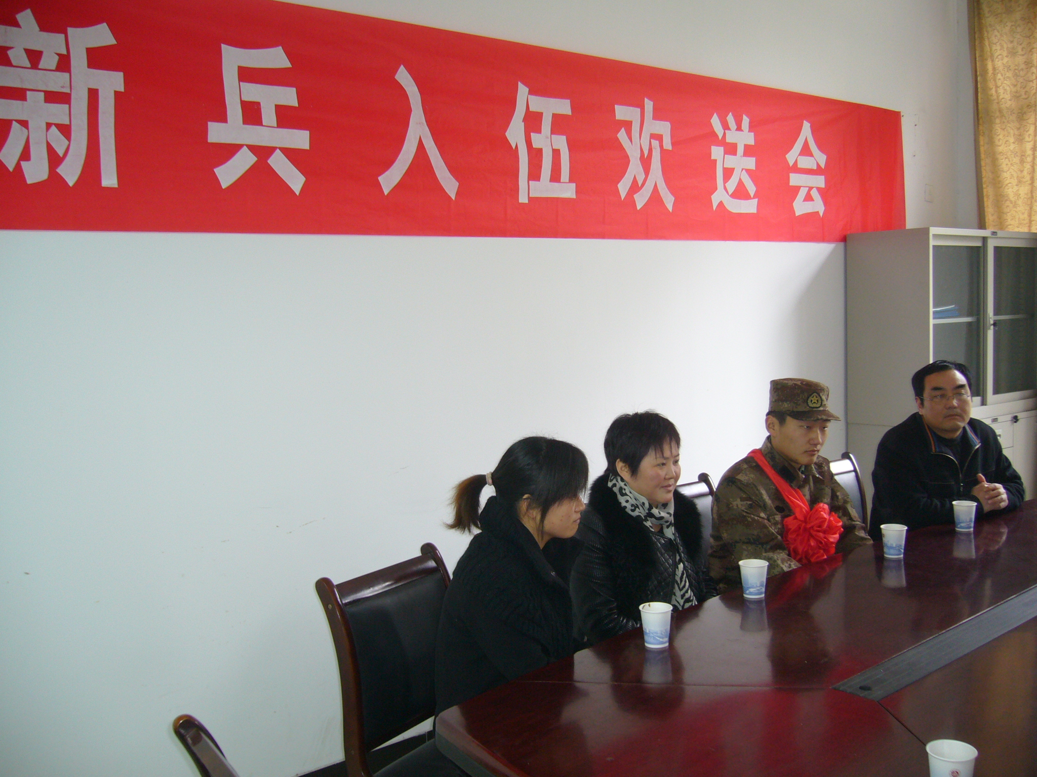 欢送会上,与会同志向应征入伍的周钰同学表示祝贺,并希望他到部队后尽快适应部队军事化管理的生活和艰苦的训练环境,继续努力学习,能够利用大学生文化修养的优势,发挥积极的作用,争取早日向母校传递捷报。周钰和其家长表示感谢学校各级领导的关心,决不辜负母校领导的期望。 欢送会结束后与会领导与入伍学生合影留念。 当晚,学校将派专车送周钰同学踏上部队的征程。