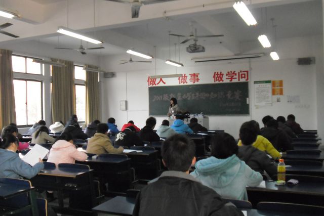 为加强校纪校风建设,进一步促进学生管理工作的规范化,学生处举办了校2011级新生《学生手册》知识竞赛活动。从各学院抽选的393名新生于12月3日下午2:30在五教一楼分11个考场参加了竞赛活动。