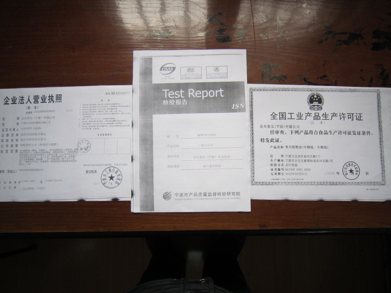 二食堂、三食堂:金光粮油(宁波)有限公司生产的厨神牌一级大豆油;