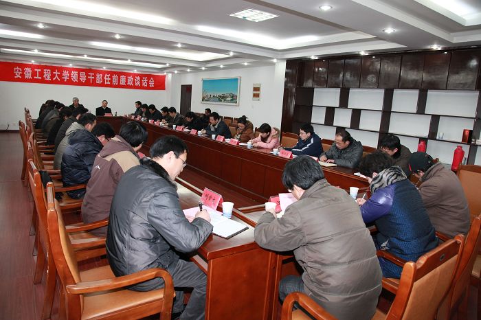 学校党政主要负责同志高度重视党风廉政建设工作,坚持对新提拔的干部进行善意、中肯的廉政谈话,是学校党委培养教育干部的重要一步,是保护干部的重要举措。会上,新任副处级干部分别结合自身岗位、廉政谈话要求等进行了表态发言,并在《安徽工程大学领导干部廉洁从政承诺书》上郑重签名,填写了《安徽工程大学处(科)级干部廉政谈话登记表》。为了进一步促进党员领导干部严格遵守《廉政准则》,逐步建立完善党员领导干部廉政档案,学校还专门要求新提拔干部填写了《安徽省党员领导干部遵守<廉政准则>情况登记报告表》。