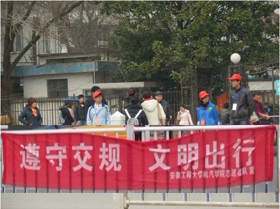 ——学雷锋,见行动。近日来,全校各级团组织以活动为载体,集中开展学雷锋活动。3月3日下午,由外国语学院团委组织的 “雷锋号专列”开进了芜湖市清水敬老院。志愿者们对老人们的生活场所包括每一个卫生死角都做了彻底清理,对老人活动周边存在的安全隐患进行了排查,陪老人聊天,还表演了喜闻乐见的小节目,深得老人们赞誉;3月5-7日,机械与汽车学院在西大门口开展“遵守交规、文明出行”交通劝导志愿服务活动;3月5日中午电气学院团委在三食堂门口开展了“弘扬雷锋精神,共建和谐校园”主题签名活动,当天下午,组织电子科技协会志愿者在教师公寓区举行家电义务维修活动;3月4-7日,生化学院团委、建工学院团委组织志愿者在全校自行车摆放区开展“整齐摆放自行车”活动,人文学院团委组织开展校园“小广告”清理行动;3月5日—7日,计算机学院团委、学生会、计算机协会组织开展“传承雷锋精神 义务维修电脑”志愿服务活动,连续三天在学校二、三食堂前和B座411教室为广大同学解决电脑常见问题;3月7日下午1点半,管理学院团务组织志愿者到中山路步行街,开展了配合文明监督员一起维护交通秩序的志愿者活动;纺织服装学院“爱心缝补” 志愿服务活动于3月5日中午在校三食堂前启动,并一直持续到3月9日;体育学院团委组织表演101班全体成员到图书馆开展器材、书架整理和卫生打扫服务活动。