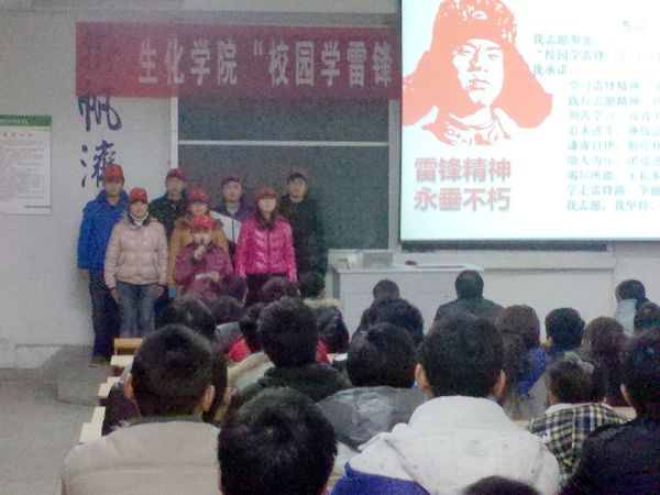 ——学精神,谈体会。2月29日上午,共青团系统学习雷锋精神座谈会在校团委会议室召开。团委书记刘一传达了党政领导陈其工、方友实、李震对共青团系统开展学雷锋活动所作的指示和要求。党委宣传部部长苏国红作“学习雷锋精神,推动社会主义核心价值体系建设”专题报告。来自全校十三个学院的团委(团总支)负责人畅谈雷锋精神内涵以及如何动员团员青年集中开展学雷锋活动;3月5-9日,各团支部组织学雷锋主题团日,讲雷锋故事,诵雷锋日记,学雷锋精神;管理学院团委 3月4日晚上在5教115教室开启“雷锋精神教育题材电影展播月活动”,当晚100多名团员青年观看了影片《离开雷锋的日子》。