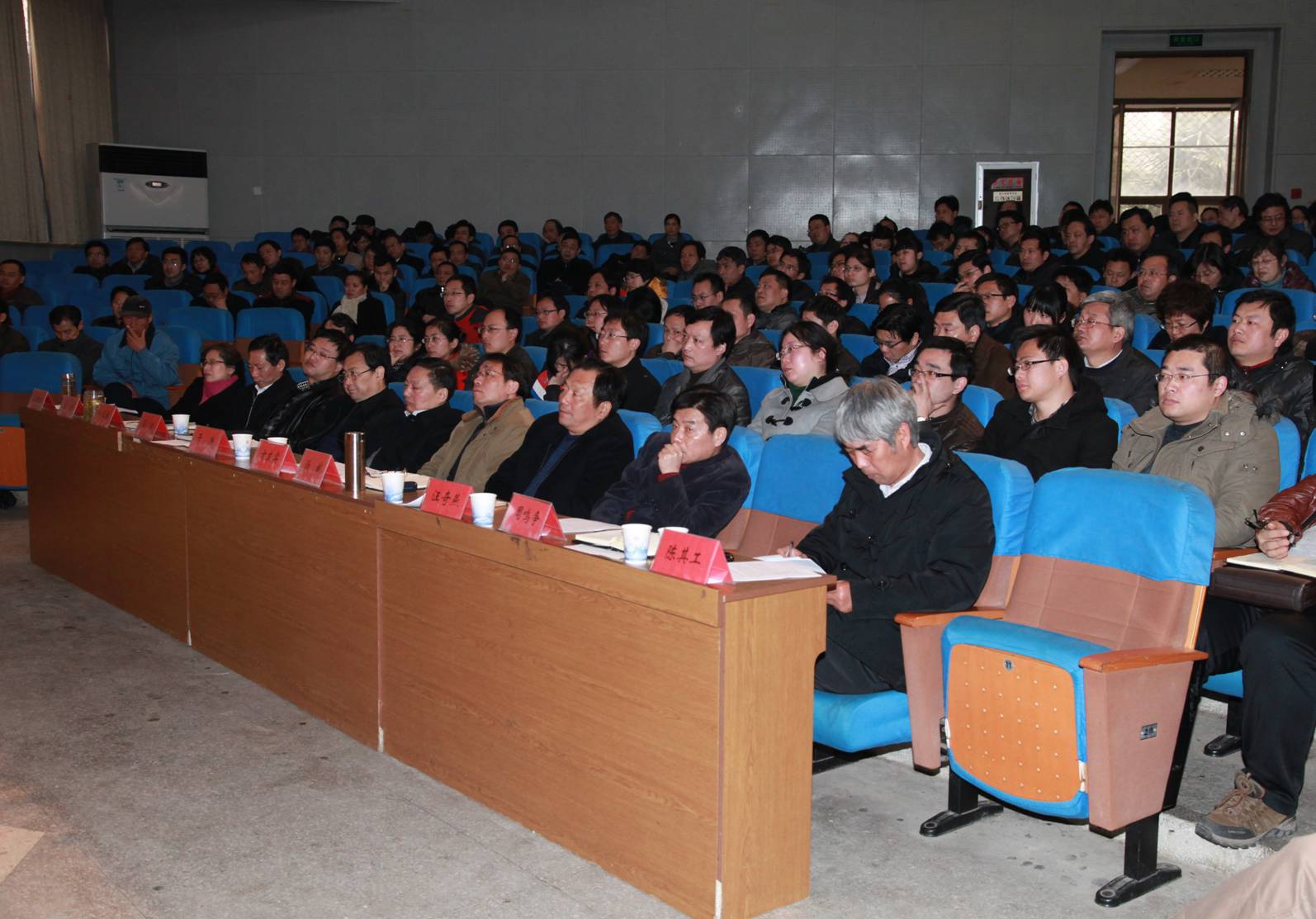 在报告中,高开华肯定了近年来我校发展所取得的成绩并归纳为“五有”即有较长的办学历史,有优美的校园环境,有务实的育人理念,有突出的办学优势,有良好的社会声誉。他鼓励大家要不忘大学使命,培养更多合格的人才;要不忘素质教育,注重全体学生的全面发展;不忘文化育人,加强大学精神与大学文化建设。最后,高开华对学校的校园文化建设给予了高度评价,他说学校的形象设计特别是学校景区与路名的设计很好地体现了大学精神,具有很高的文化内涵,让他印象深刻。高书记以学校景区与路名为内容所作的精彩诗句:“立德立信求知路,敏学笃行博雅文。映月桥上歌不断,风行湖畔笑连声。教学相长崇六艺,九曲桃园历艰辛。雅园听荷品高洁,溪亭寻韵爽精神。小桥流水沁心脾,宁静致远满目春。”拉近了与在场全体干部老师的感情,激起全场热烈的掌声。