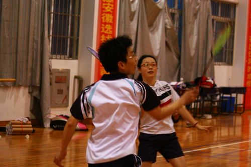 本届比赛的高潮是竞赛部组织优秀选手进行的男双、女双、混双表演赛。李兴扬、王竹君对卜晓勇、刘德军,龙腾虎跃、强健豪烈;张瑾、李爱荣对孙莉、王莉,彩凤翩翩、英姿飒爽;郑刚、张瑾对钟相强、孙莉,蜓飞蝶舞、刚柔并济,他们精彩的表演展示了一年来协会会员训练成果,也为全体会员提供了一次难得的观摩学习、共同提高的机会。