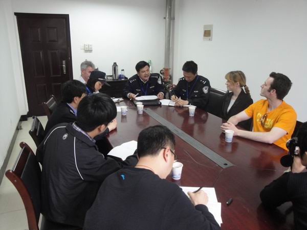 会上,李自明首先介绍了此次走访与座谈的主要目的,并就外国专家眼中校园及周边的治安情况以及今后派出所辖区管理工作更为深入有效的开展听取我校外国专家的意见和建议。在我校执教多年的来自英国的专家Stephen首先发言,他说在学校和芜湖生活和工作多年,深切感受到芜湖公安的管理能力很强,对社会治安十分重视,相比英国的部分地区,芜湖市的治安管理工作做得非常好,尤其是校园内外的治安状况令其十分满意。今年刚到我校任教的外国专家Niall和Krystin是一对分别来自英国和美国的年轻夫妻,虽然刚到芜湖不久,但他们也对校园周边和芜湖社会安定祥和的氛围感同身受。随后,外国专家还对校园周边的交通安全及管理工作提出了意见和建议。