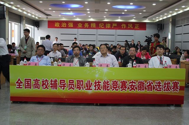 本次比赛包括基础知识测试、微博写作、自我介绍与展示、主题班会、谈心谈话和案例分析等六个项目,比赛采取笔试、机试、现场展示的方式进行。来自合肥工业大学、安徽大学、安徽师范大学、安徽医科大学等全省八所高校的辅导员老师参加了比赛。比赛最终评选出一等奖1名、二等奖2名、三等奖5名。
