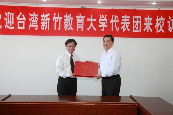 陈惠邦十分感谢学校的热情接待,在简要介绍了新竹教育大学的基本情况后,诚挚的邀请我校组团到台湾访问,并就师生互换、相关专业的合作办学提出了设想与合作模式,并明确表示6月份将再次访问我校,并签署正式的两校合作协议书。