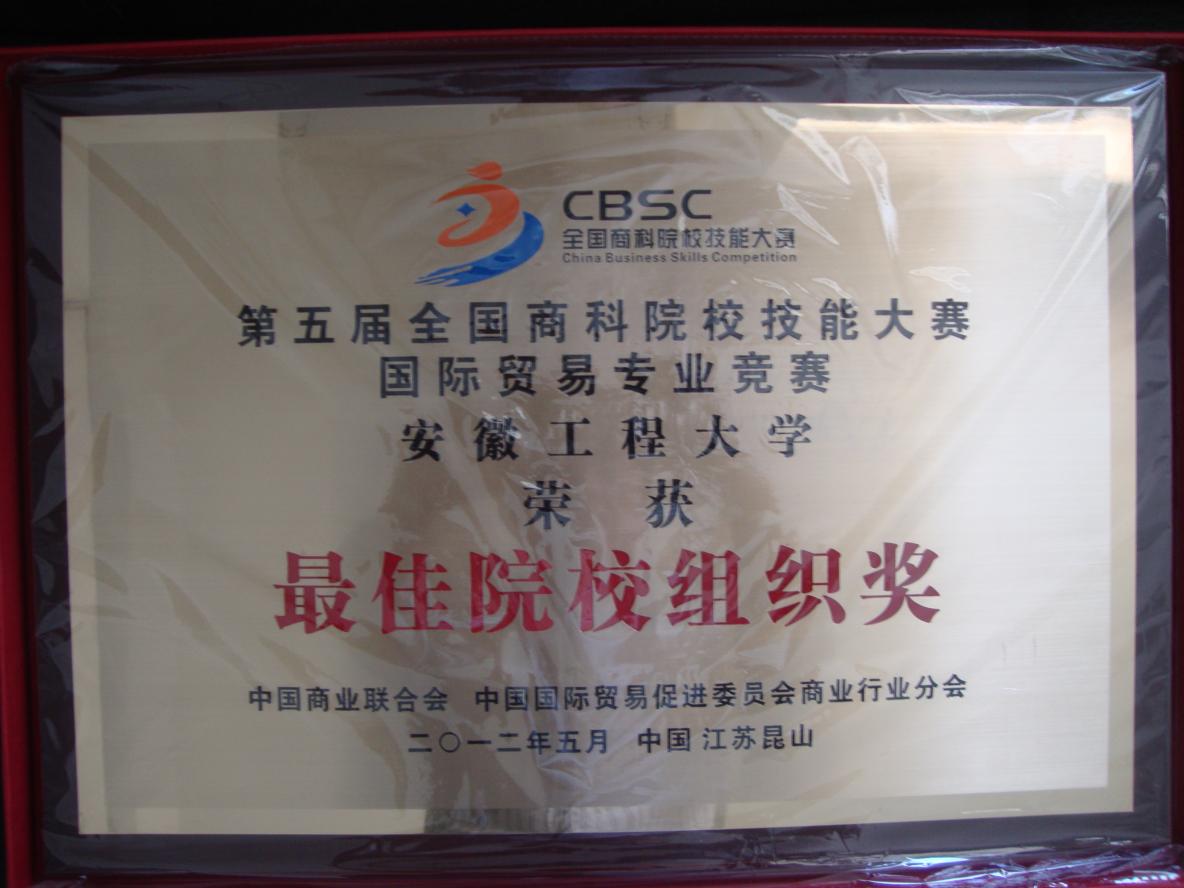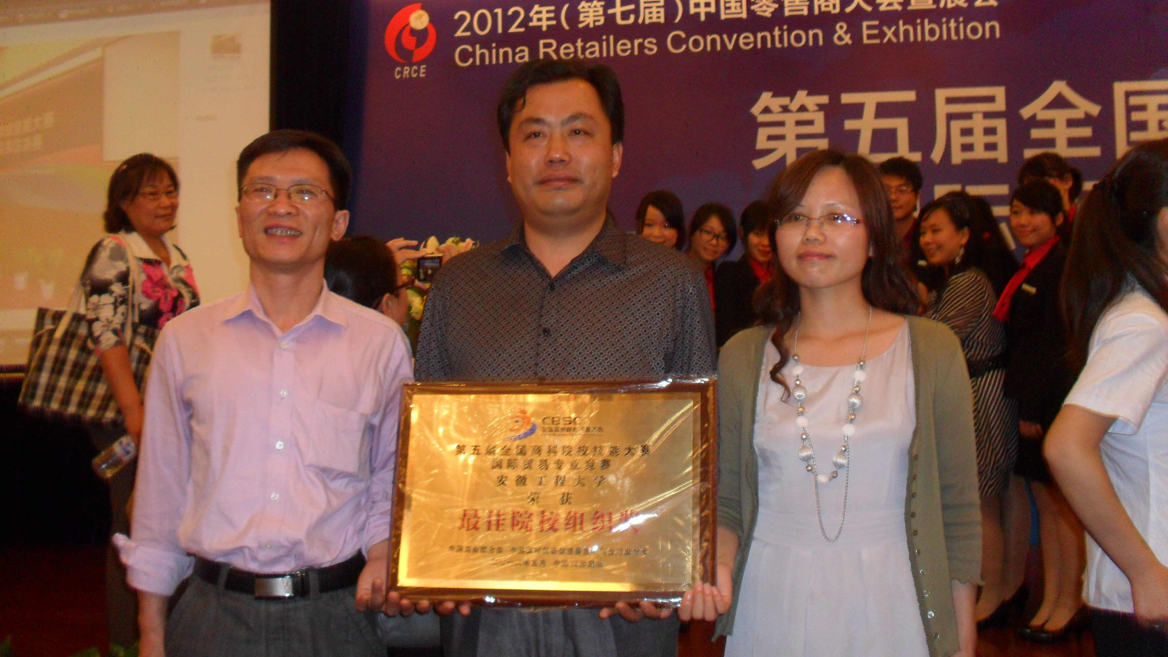5月11-15日,由中国商业联合会、中国国际贸易促进委员会商业行业分会联合主办的第五届全国商科院校技能大赛国际贸易专业竞赛总决赛在江苏昆山国际会展中心举行。我校管理工程学院国际经济与贸易2009级16位同学组成的两支代表队分别夺得了二等奖和三等奖,我校还同时荣获了“最佳院校组织奖”和“最佳校企合作奖”。 全国商科院校技能大赛国际贸易专业竞赛是当前国内高校国际贸易专业大学生参与范围最广、规模最大的全国性大赛。自接到本次大赛组委会的邀请函,学院领导高度重视,精心组织和安排比赛的各个环节。首先组织我校赛区国际贸易知识比赛,从知识赛成绩优秀的选手中选出了6个代表队参加安徽省赛区创意选拔赛,最终我校两个代表队——“QIAN FAN”队和“DREAM RUNNER”队胜出参加全国总决赛。为加强参赛代表队的专业性和针对性,管理工程学院还邀请了芜湖东方防腐有限公司和芜湖储氏铁画有限公司分别作为我校两个参赛队的合作企业。本次决赛共有来自全国本科、高职高专院校的77支代表队参加,比赛以“2012年中国(昆山)国际贸易模拟商品展”的形式举行,比赛设参展商业计划书、外贸产品发布会(英文)、展位设计与商品陈列以及展场商务沟通(英文)等四个环节。在何朝林、章秀琴、项菁和张伟兵等老师的指导和带领下,参赛选手奋勇拼搏,合作企业鼎力支持,圆满地完成了本次比赛任务,取得了可喜成绩,充分展示了我校扎实的专业教学基础和教学改革成果以及我校学生良好的专业素质和实践、创新能力,凸显了我校高素质应用型人才的培养目标。同时,大赛为我校搭建了教产对接、校企合作和实践教学的又一个平台,并有力地推动了国际经济与贸易校级特色专业的建设。 本学期以来,管理工程学院基于学生“一、二、三”课堂联动协调建设的基本思想,积极组织学生参加各类国家级学科专业竞赛,全力打造学生第三课堂,全面提升学生的专业素养和专业技能。截止目前,在教务处、学生处、校团委和现代教育技术中心等相关部门和各兄弟学院的大力支持下,管理工程学院已先后成功承办“挑战杯”创业计划大赛、全国商科院校技能大赛国贸专业技能竞赛和“商道”全国大学生管理决策模拟大赛,正在筹办第三届中国大学生服务外包创新创业大赛。上述各项赛事累计吸引了各个学院的近1500名同学参加,反响热烈。