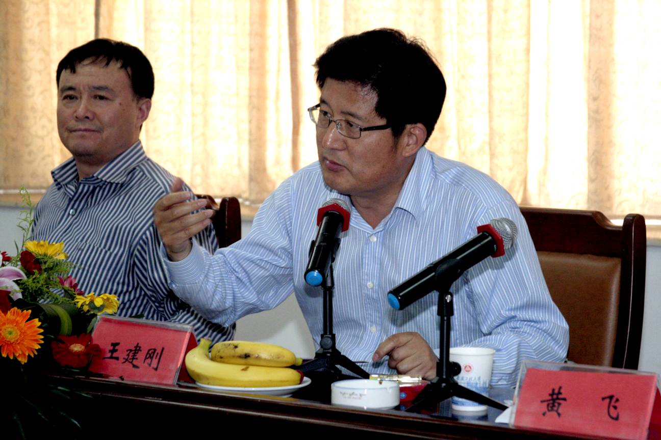 会议分两个阶段,第一阶段的欢迎会由黄飞主持。安徽工程大学校长干洪致欢迎词。他代表安徽工程大学机电学院全体师生员工,对各位专家、各位领导在百忙之中来校检查指导工作,表示最衷心的感谢和最热烈的欢迎。