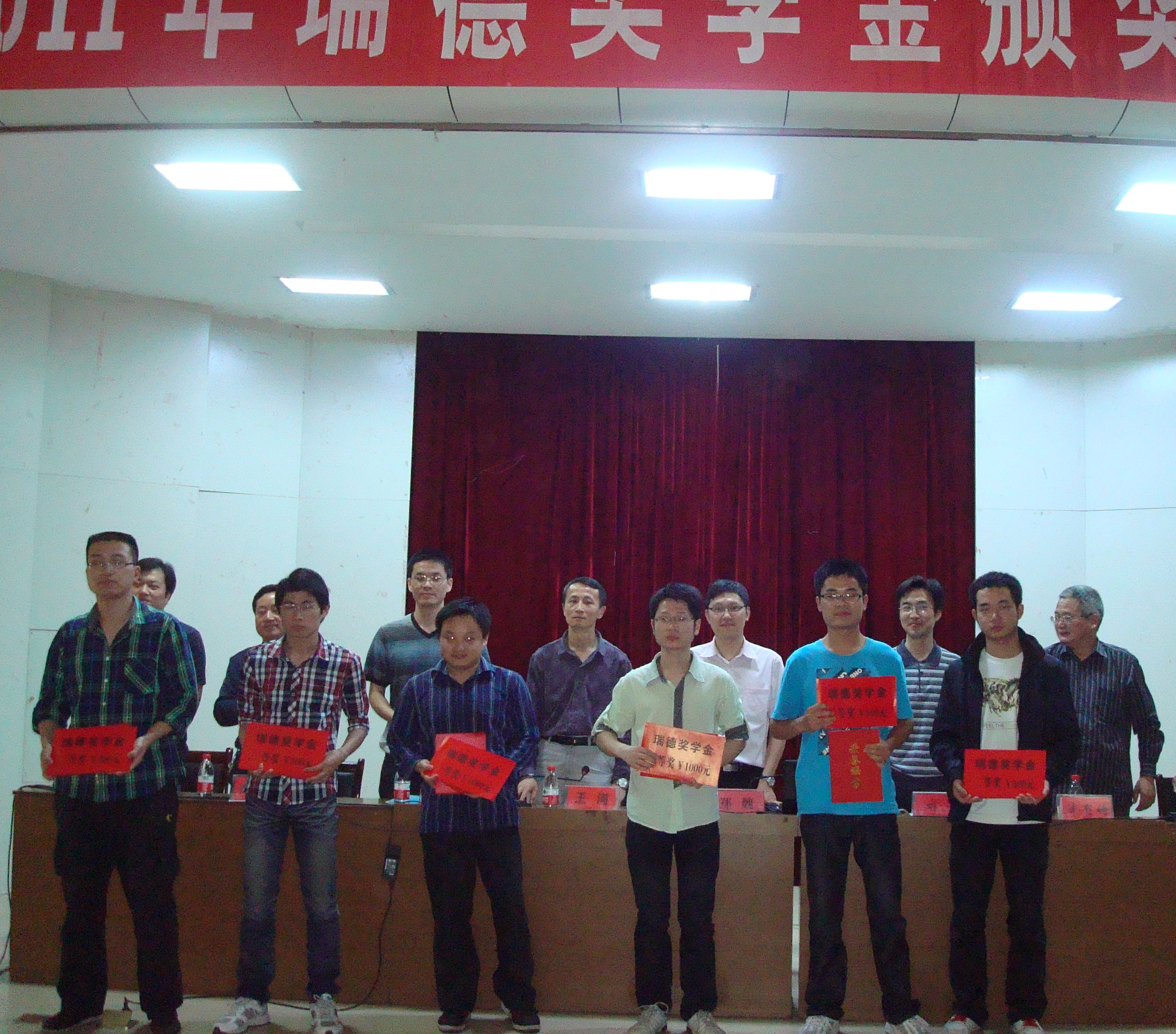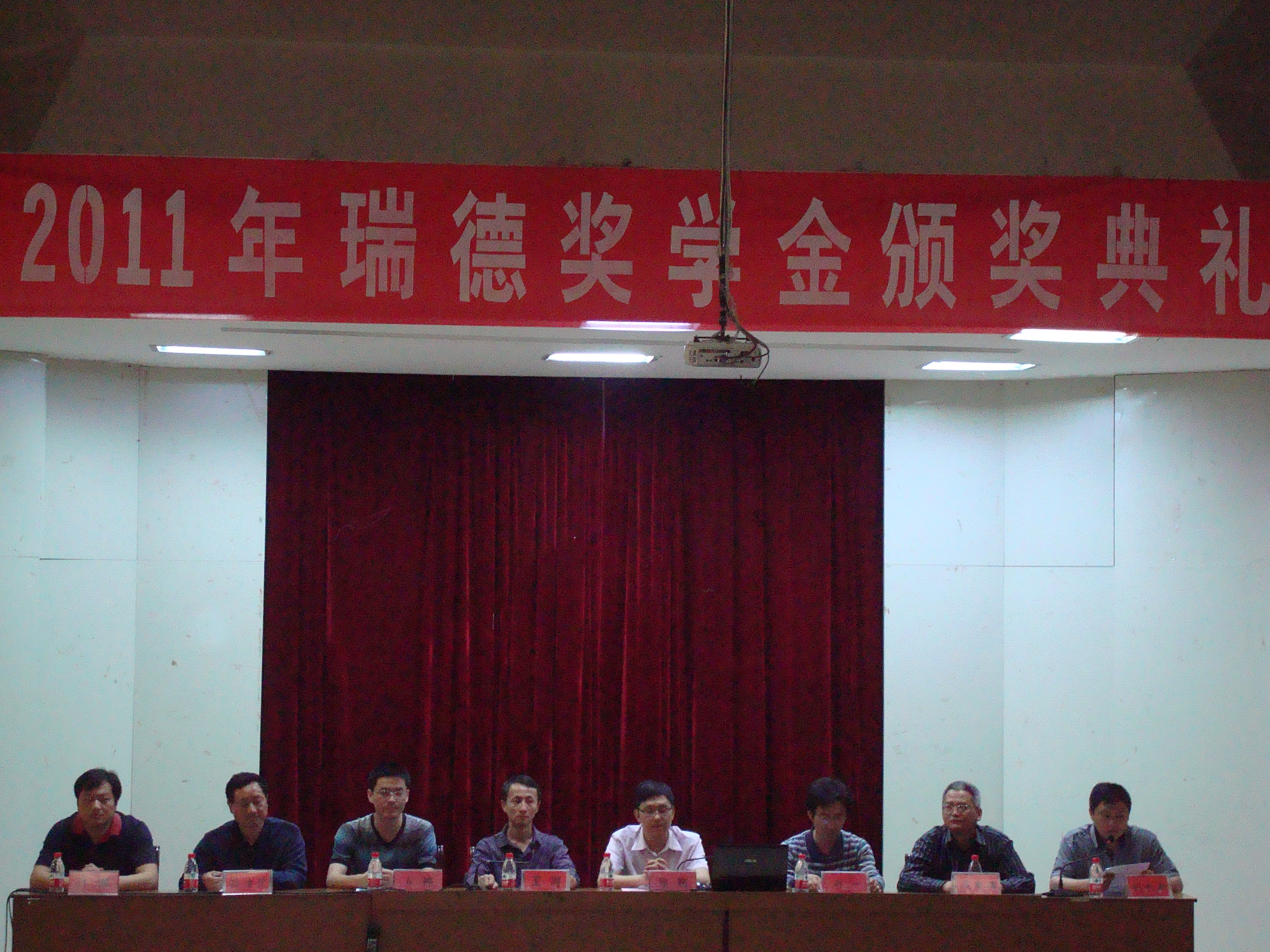 刘一宣读了《2011年度瑞德奖学金获奖情况的通报》,并与主席台就坐的其他领导和嘉宾一道为获奖同学颁发了奖金和证书。
