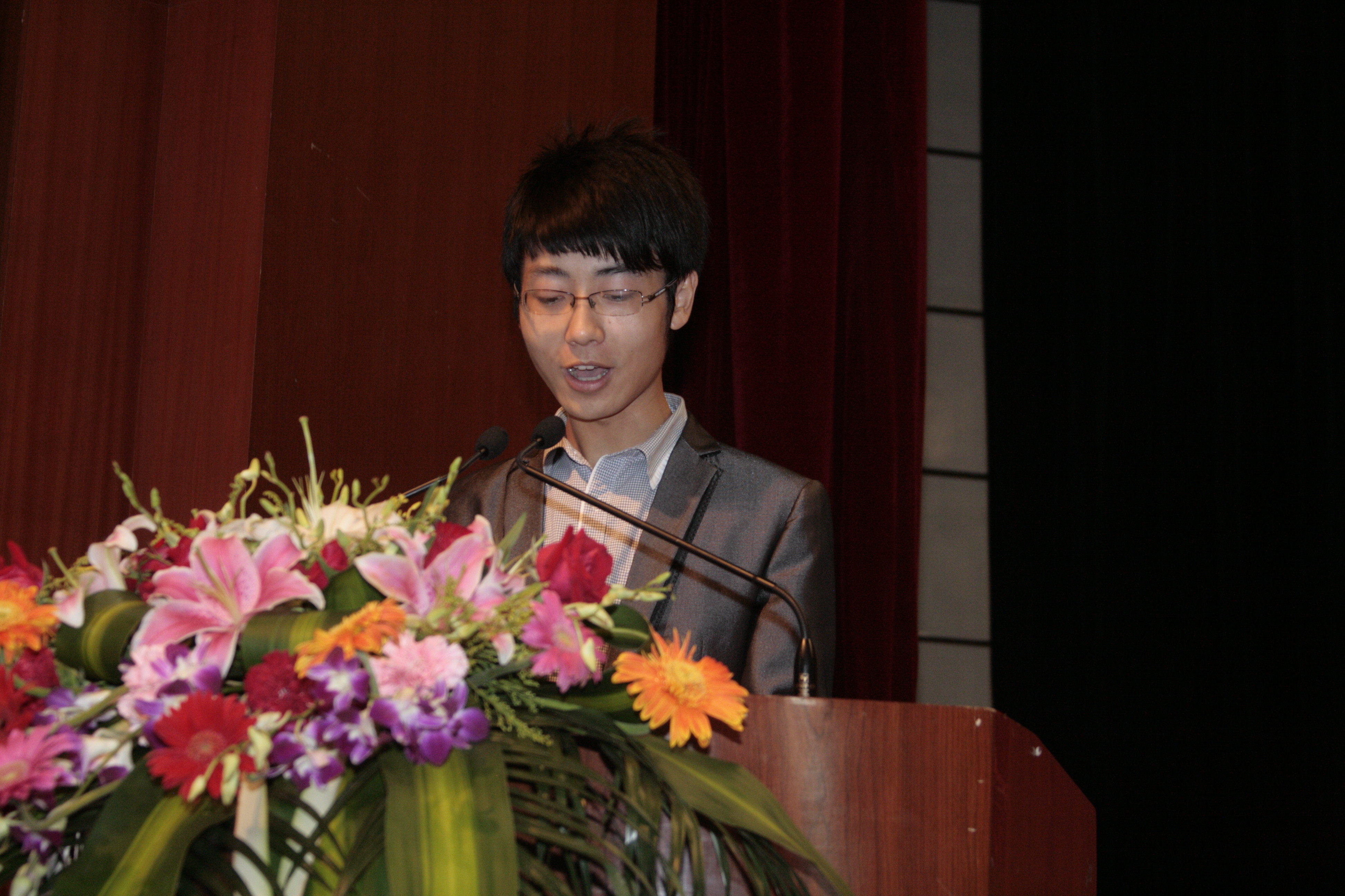 在校学生代表纺织082班李昂同学发言