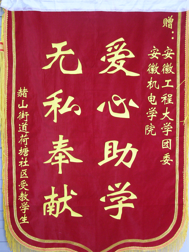 5月12日,赭山街道办事处会议室举行了荷塘社区第八期爱心助教结业典礼。此次爱心助教活动自3月10日开始,5月12日结束,历时两个月。机电学院团委副书记高潮参加结业典礼,并接受赭山街道荷塘社区赠予安徽工程大学团委和机电学院团委“无私奉献,爱心助教”的锦旗。