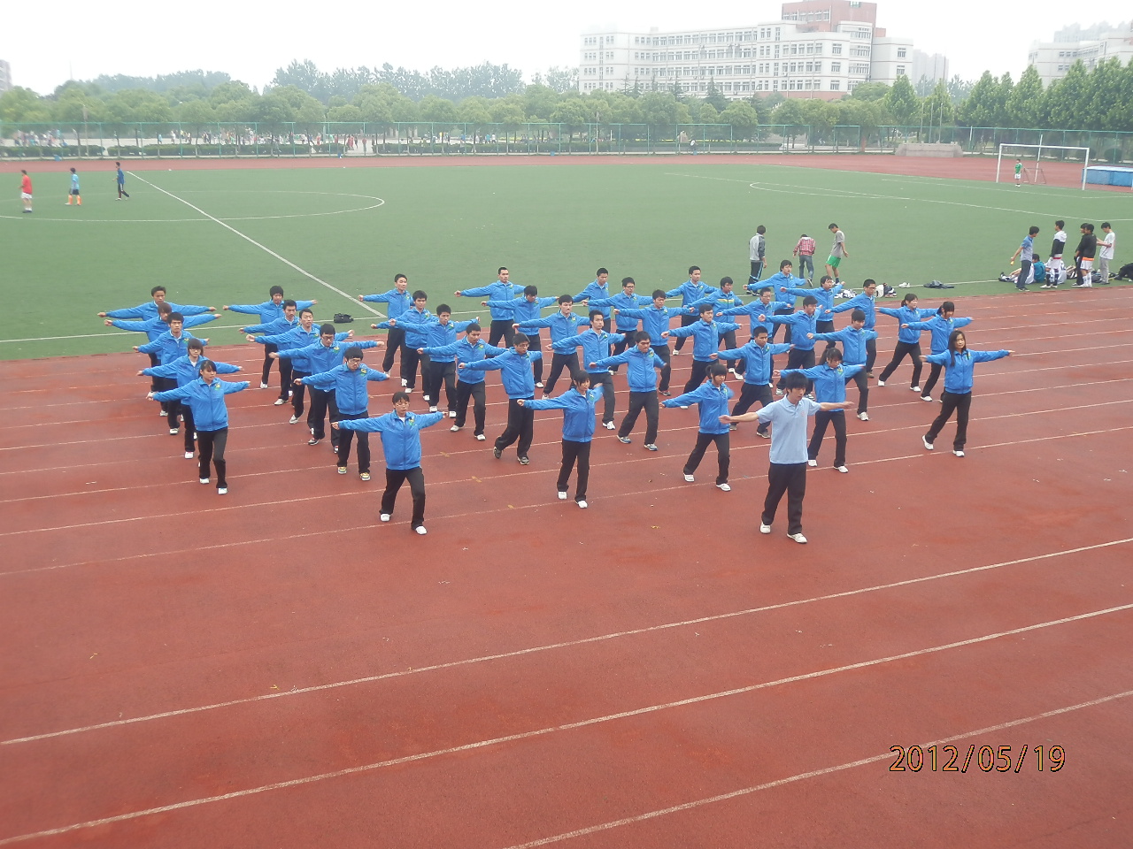 为丰富同学们的校园文化生活,培养集体荣誉感,机械与汽车工程学院于5月19日下午在田径运动场举行了2012级广播体操比赛。担任此次比赛评委是体育学院金庆红、王建老师,学院党委副书记周怡、辅导员陈刚、孙霞老师观看了比赛。