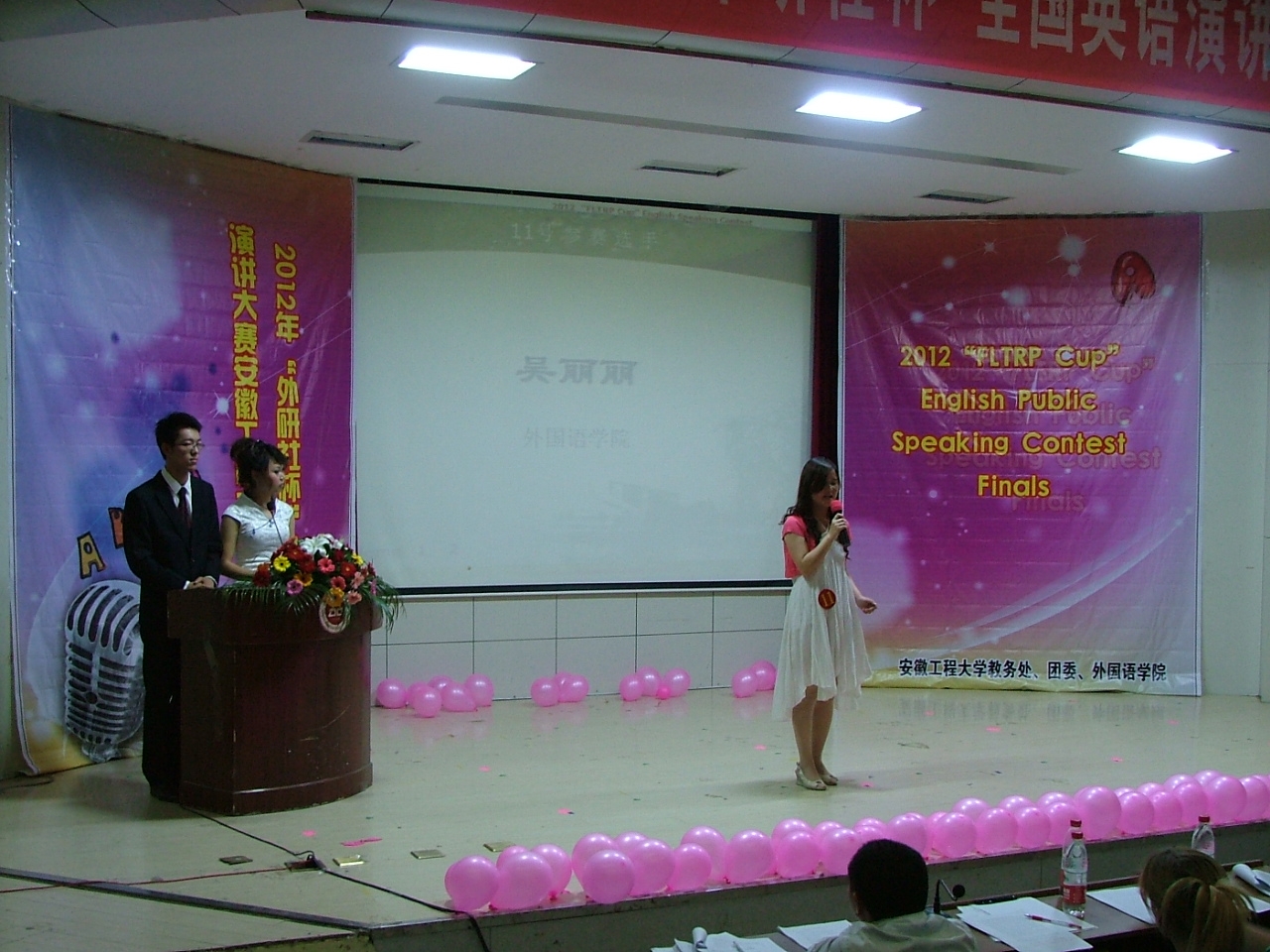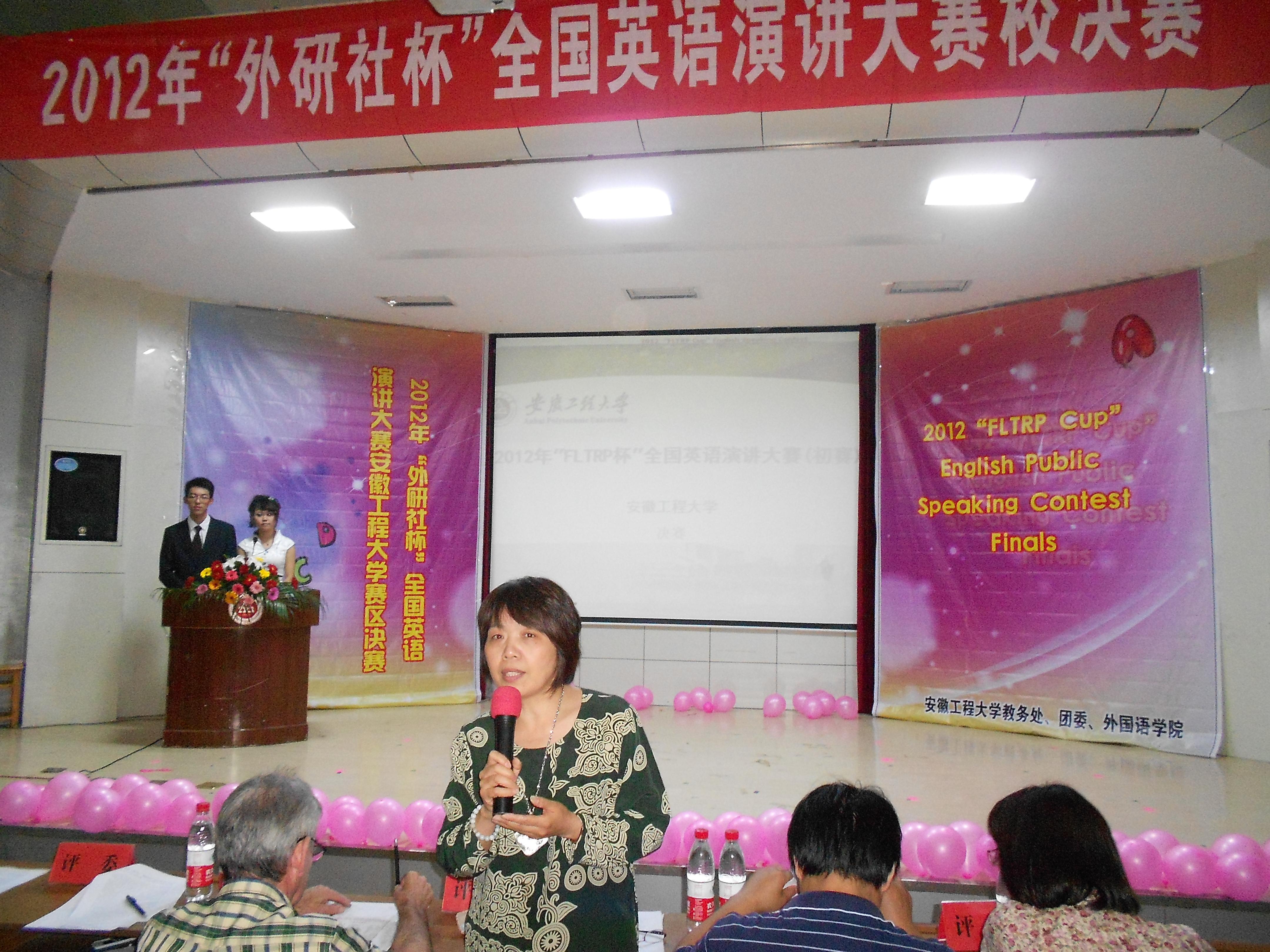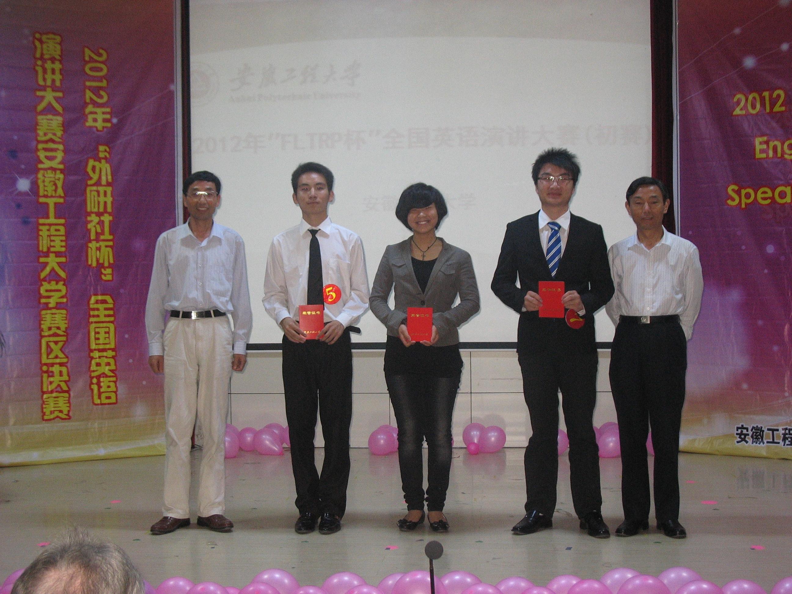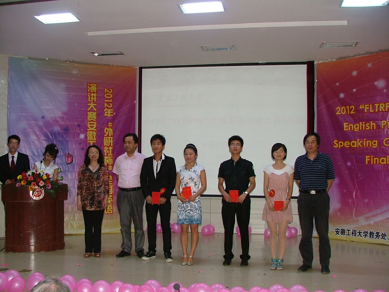 “外研社杯”全国英语演讲大赛是由外语教学与研究出版社、教育部高等学校大学外语教学指导委员会主办的全国性赛事。大赛分全国决赛、省级复赛和高校初赛。此次我校选拔赛分预赛和决赛两个阶段。预赛分为专业组和非专业组,共105名选手,选手通过语音语调、演讲技巧、自身素质等方面的综合展示,最终有17名选手成功晋级决赛。决赛分自我介绍、定题演讲、回答问题、即兴演讲等四个环节。选手们自我介绍时大方得体,有的介绍形式新颖、活泼,极大地吸引了观众的眼球;定题演讲时,选手们的演讲稿准备充分,演讲流利;在回答问题和即兴演讲环节,更是有几位选手以机智幽默引得阵阵掌声。经过激烈的角逐,外国语学院英语092班吴丽丽和计算机与信息学院信息092班宫瑞佳凭借纯正的语音语调、流畅的语言表达和敏捷的思维赢得一等奖。另外,比赛还产生二等奖三名,三等奖四名,优秀奖若干名。