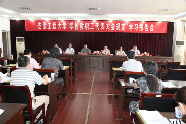 方友实在随后的讲话中,首先对王兰主席一行百忙之中到我校指导工作表示真诚地欢迎,对省教育工会和高校工会教代会研究会长期以来对我校的关注和支持表示感谢。方友实同时指出,建立现代大学制度,必须朝着真正崇尚学术、崇尚真理,对国家、民族以及人类拥有强烈责任感的方向努力,民主管理理应成为现代大学应有之内涵。教代会作为高校民主管理的重要载体和抓手,是集中民智,提高科学决策水平,构建以人为本的先进校园文化,进一步形成良好民主建设氛围的坚实基础,我校教代会工会工作与学校建设事业同进步、共发展。方友实希望参会人员珍惜学习机会,结合教育部31号令和32号令的学习,对王兰主席的讲话和龚理事长的报告深刻领会认真落实,同时提出四点要求:一是,围绕中心,服务大局,不断增强工会组织的凝聚力,发挥好桥梁纽带作用。二是,以人为本,凝心聚力,积极构建先进校园文化,全力推进全总和省教育工会要求的“面对面、心贴心、实打实服务职工在基层”活动,构建和谐校园。三是,大胆突破,开拓创新,不断深化教代会工会工作,认真修订《安徽工程大学教职工代表大会暂行条例实施细则》和制定《安徽工程大学二级教代会(工代会)实施细则》,全面推进二级教代会制度建设和二级民主管理。四是,加大工会干部培训力度,增强工会干部的素质,不断提升工会工作的整体水平。方友实最后强调,忠诚、奉献和智慧是做好教代会工会工作的基础,要用真诚去沟通,用智慧去推动。