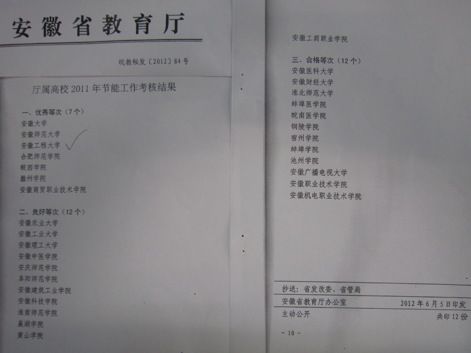 近日,我校被省教育厅评为2011年度节能工作优秀等次。这是学校党政领导长期高度重视、各学院各部门齐抓共管、广大师生共同努力的结果。