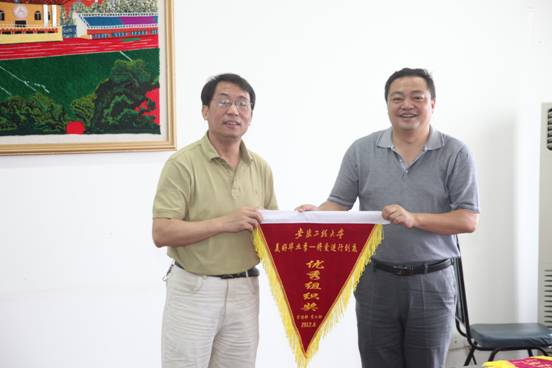 会上,方友实为获得宣传部与工会共同举办“那些幸福那些年” 主题博文大赛优秀组织奖的纺织服装学院、生化学院、人文学院颁奖,为获得宣传部和学工部共同举办的“美好毕业季——将爱进行到底”的优秀组织奖的生化学院、纺织服装学院、计算机学院等颁发了奖旗。