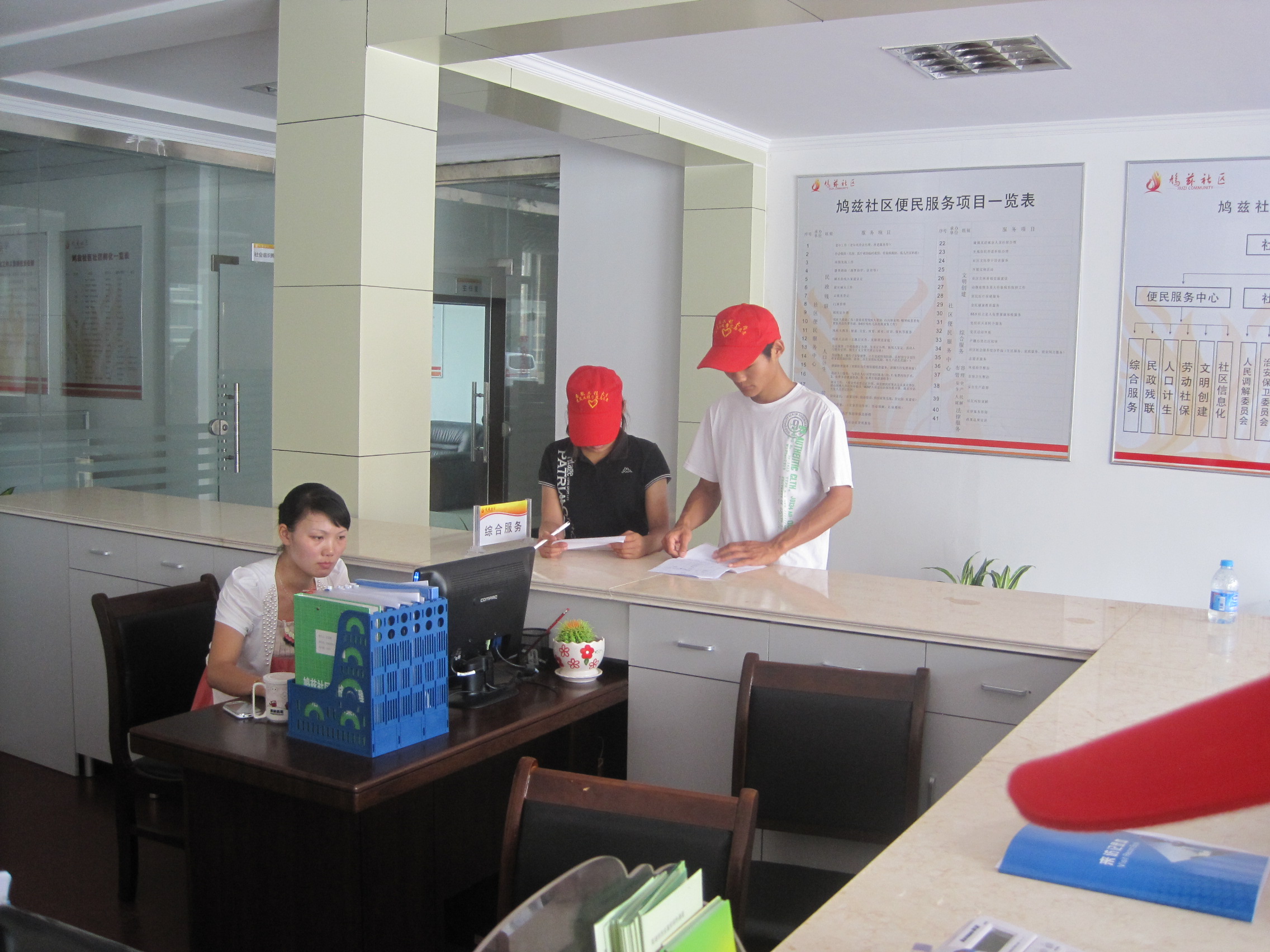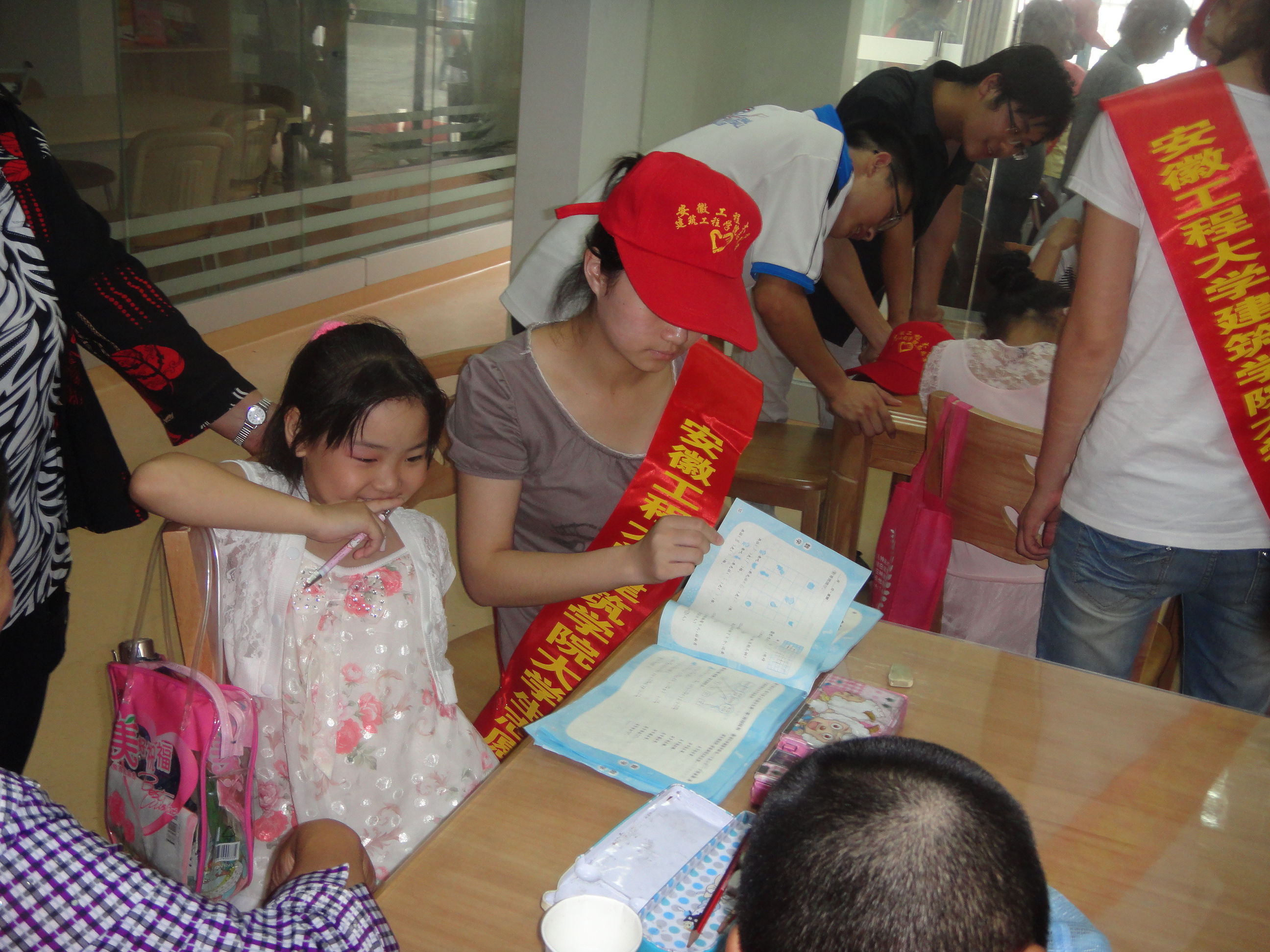 7月2日下午,在辅导员刘海涛老师和韦学玉老师的带领下,建工学院大学生暑期重点实践队员统一乘坐大客车,井然有序的到达官陡街道鸠兹家苑社区服务中心。针对社区居民的基本状况,学院与社区经过反复沟通做出了详细的计划,服务项目包括:社区读书辅导、社区敬老爱老、社区文明宣传、社区行政服务、社区留守儿童助学等服务内容。学院根据实践队员的素质和能力,把暑期实践人员分成五组陆续针对性地开展实践服务。如第一组的读书辅导服务,同学们以社区图书馆为依托顾不得炎热的天气一丝不苟的整理、排序、筛选图书,使图书馆焕然一新,并以“书是知识的海洋”为主题引导社区青少年,积极广泛阅读,并指导学习的内容。第二组的敬老爱老的队员,则耐心的陪社区老人进行聊天、下棋等娱乐活动,让老人们得到更多心理关怀。在和他们聊天中,我们的队员通过他们流淌在艰苦岁月中的故事,也增加了人生阅历、学会了一些做人的道理,受益匪浅。而第三组的社区文明宣传,则从实地基层做起,利用文明宣传的材料,深入街道、商户、住户家中等宣传文明知识,倡导文明习惯,通过宣传提高社区居民的文明素养。第四组的同学则通过官陡街道服务中心,配合道德大讲堂的知识宣传将社会主义八荣八耻、道德示范等文明意识传播到社区的老百姓当中,号召大家讲文明、创文明。最后第五组的留守儿童助学服务,通过组织社区的留守儿童讲故事、猜谜语、做游戏等将欢声笑语传递给了在场的每一个人,看到孩子脸上天真无邪的笑容,同学们也露出了发自他们内心的高兴。活动结束后,小朋友难舍我们这些90后的哥哥姐姐们,家长更是希望我们长期关注留守儿童,以后能多多来指导,给予他们更多的社会关注。