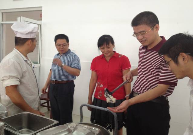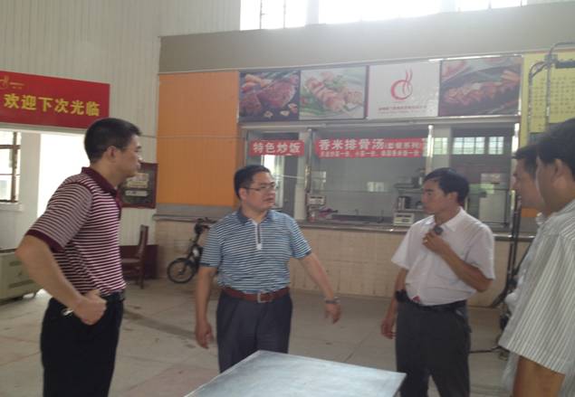 8月30日,新学期即将开始,后勤服务集团总经理魏长顺、副经理纪天新、办公室主任张祖柏等在膳食服务中心主任卢学根的陪同下,对学校五个学生食堂的供餐准备工作情况进行了检查。