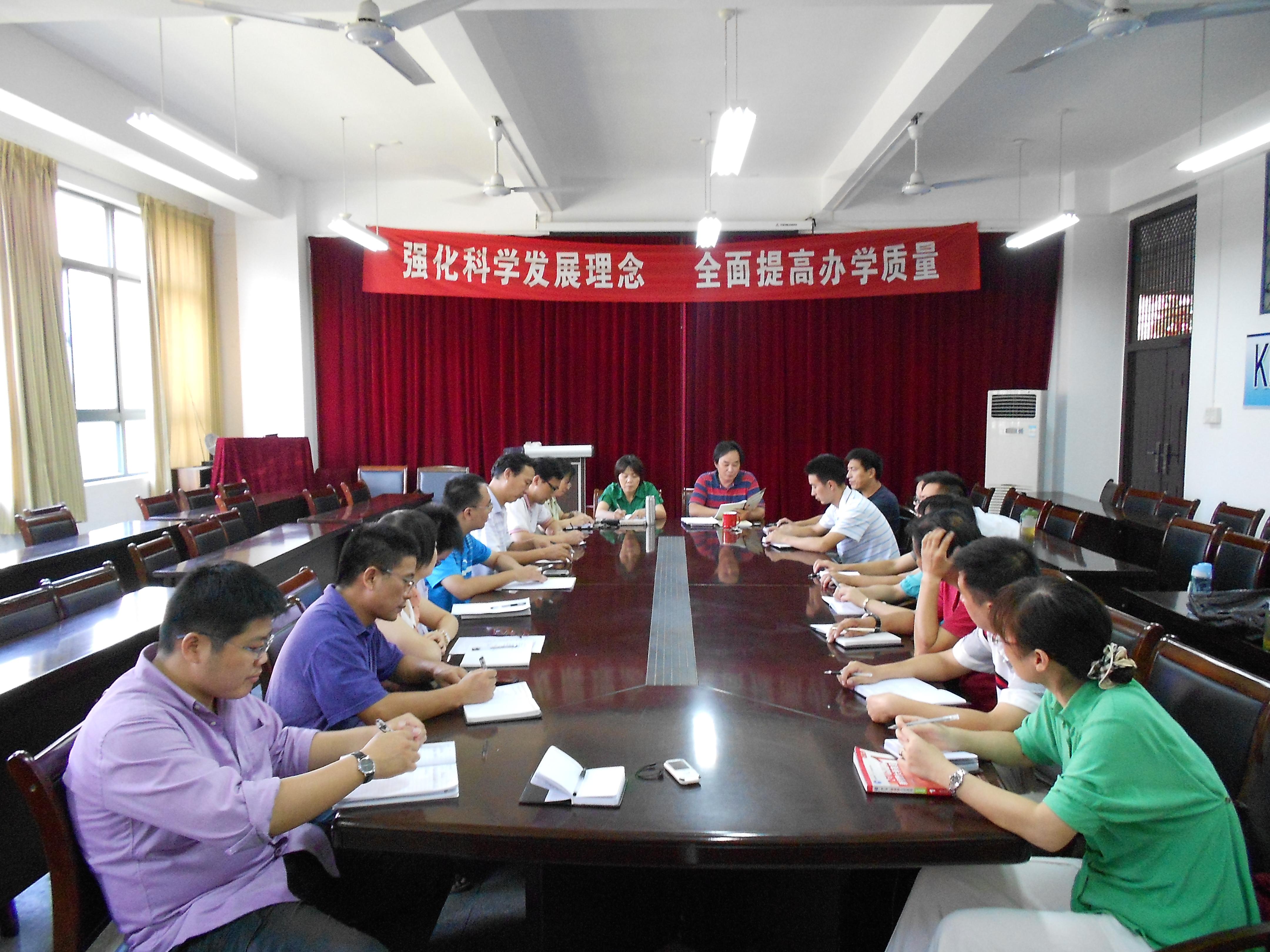 会议由刘进院长主持。首先,金成星副院长传达了学校2012年暑期教学工作会议的主要精神,并对省教育厅高教处处长储常连博士,校党委书记陈其工,校长干洪的报告重点作了详细的解析。尤其强调了我省高等教育的“六大趋势”,应用型人才培养效果的“五个度”,坚持“五个引入”深化教学改革等方面的内容。之后,金成星结合我校的办学定位,与大家分享了他对外国语学院应用型人才培养目标的理解。他认为学院应当培养具有一定创新素质的复合型应用型人才,为此,应进一步强化教学的中心地位,大力推进实践教学环节的改革、管理与实施,着力培养外语“双能型”师资,不断提高外语人才培养质量。
