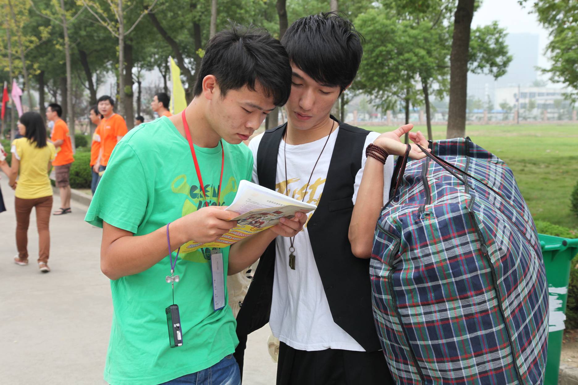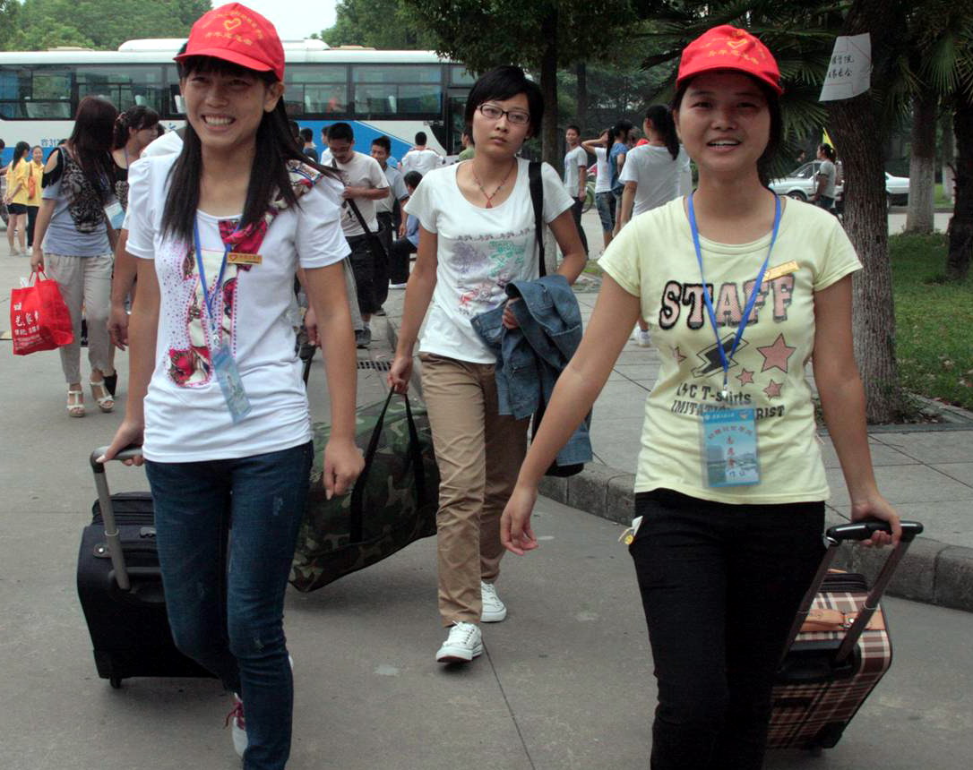 9月8日,秋高气爽,高悬的气球、缤纷的彩旗、醒目的条幅把美丽的校园装扮一新。朝气蓬勃的2012级近5000名新生从全国各地汇聚芜湖,接送新生的大巴车不时从芜湖火车站、汽车站接来一批又一批的新生,校园内一片热闹、忙碌的景象。