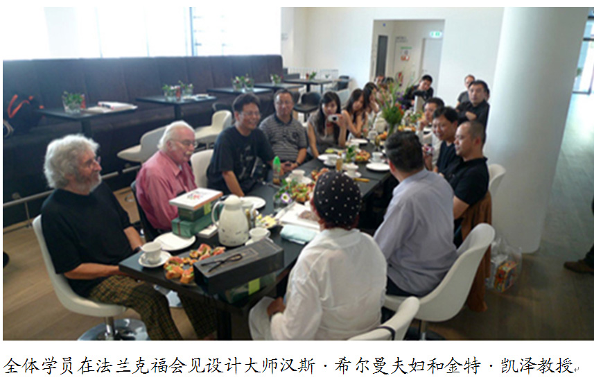 全国设计“大师班”由 本届“大师班”走出国门,赴世界著名设计大师冈特·兰堡教授的居斯特罗(Guerstelow)工作室进行短期学习。全团共17人,包括 本届“大师班”围绕“艺术与社会”,结合中国城市化发展需要,对“田园城市”这一主题进行视觉化研究和表现,同时对大师教学方法和设计方法进行探讨,并以具象的招贴广告形式进行表现。 学习期间参观了世界现代艺术第一大展——卡塞尔文献展(documenta)、柏林历史博物馆、柏林艺术博物馆、法兰克福电影博物馆、波茨坦电影城(UFA)等。访问了卡塞尔大学设计学院、柏林艺术大学、波茨坦创意学院、德绍包豪斯学院等。并与德国著名设计大师以及教育家格哈德·马蒂亚斯(Gerhard Mathias)、汉斯·希尔曼夫妇、金特·凯泽等教授会面交流。 在居斯特罗冈特·兰堡教授工作室,每天看到的不仅仅是大师的作品,还感受到大师对待设计、教学和生活的态度,同时兰堡在生活环境和工作环境的营造方面也让我们受益匪浅。 虽然只有短短的12天,但收益是巨大的。通过这次如此深度的学习,我们深感自身知识的欠缺以及外出学习交流的重要。