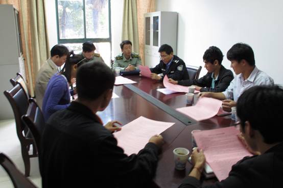 为进一步做好我校在校大学生2012年征兵工作,10月18日上午,保卫处(武装部)在处会议室召开2012年冬季征兵工作座谈会,鸠江区征兵办副主任(区武装部)王大文副部长、杨国良科长、校武装部副部长江海等出席座谈会,纺织服装学院、生物与化学工程学院辅导员代表及部分学生代表参加座谈会。