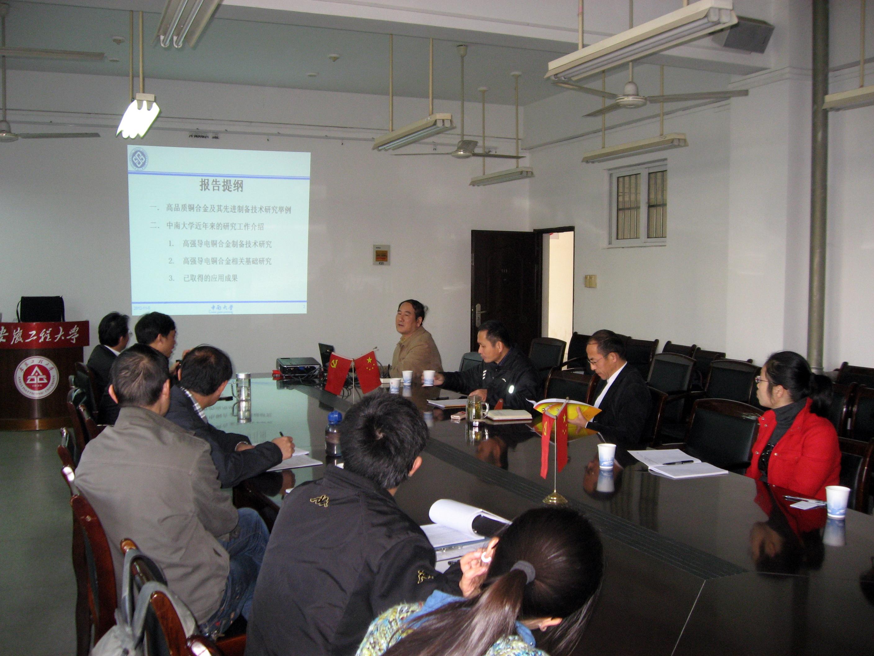 应机械与汽车工程学院邀请,2012年11月05日上午,中南大学教授、博士生导师、教育部材料科学与工程教学指导委员会秘书长、国家工程教育材料类专业认证工作组秘书长汪明朴来我校作学术报告。报告会在机械与汽车工程学院会议室进行,机械学院院长许德章、院党委书记邓英扣,校分析与测试中心主任、材料学科带头人孙宇峰,机械学院副院长朱协彬、高洪,部分教师和研究生代表参加了报告会。报告题为“高品质铜合金及其先进制备技术研究进展”。