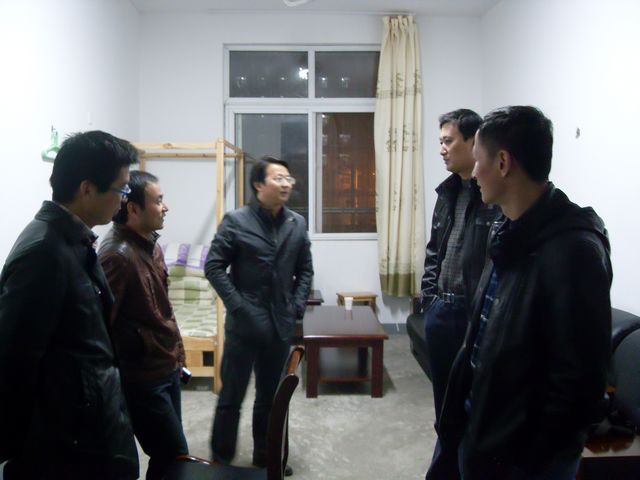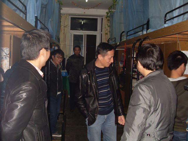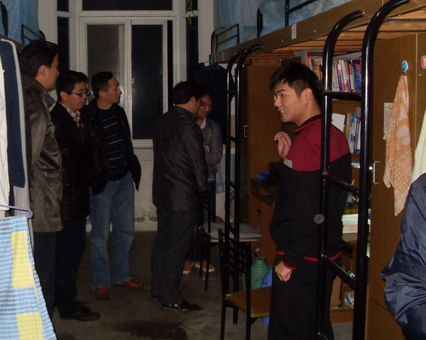 11月21日晚8:30,学生处处长王河、副处长胡家增、后勤集团副总经理李敬华、宿管中心主任李四军和学生教育管理科副科长杜松涛一行走访了学校宿舍区的四个辅导员夜间值班室,向辅导员详细了解了晚间的值班和走访情况,并随机走访了部分学生宿舍,了解同学们在宿舍的学习和生活情况。走访中发现多数宿舍内文明整洁,学风良好,但有少数学生宿舍存在着卫生脏乱差、沉浸电脑游戏、乱拉电线、使用违规电器等不良现象和安全隐患。走访人员及时给予了批评指正,强调学生宿舍是同学们学习休息的场所,文明整洁的卫生环境需要每个人参与,宿舍人员集中,消防安全无小事,希望同学们理解用电规定,自觉做到安全用电。