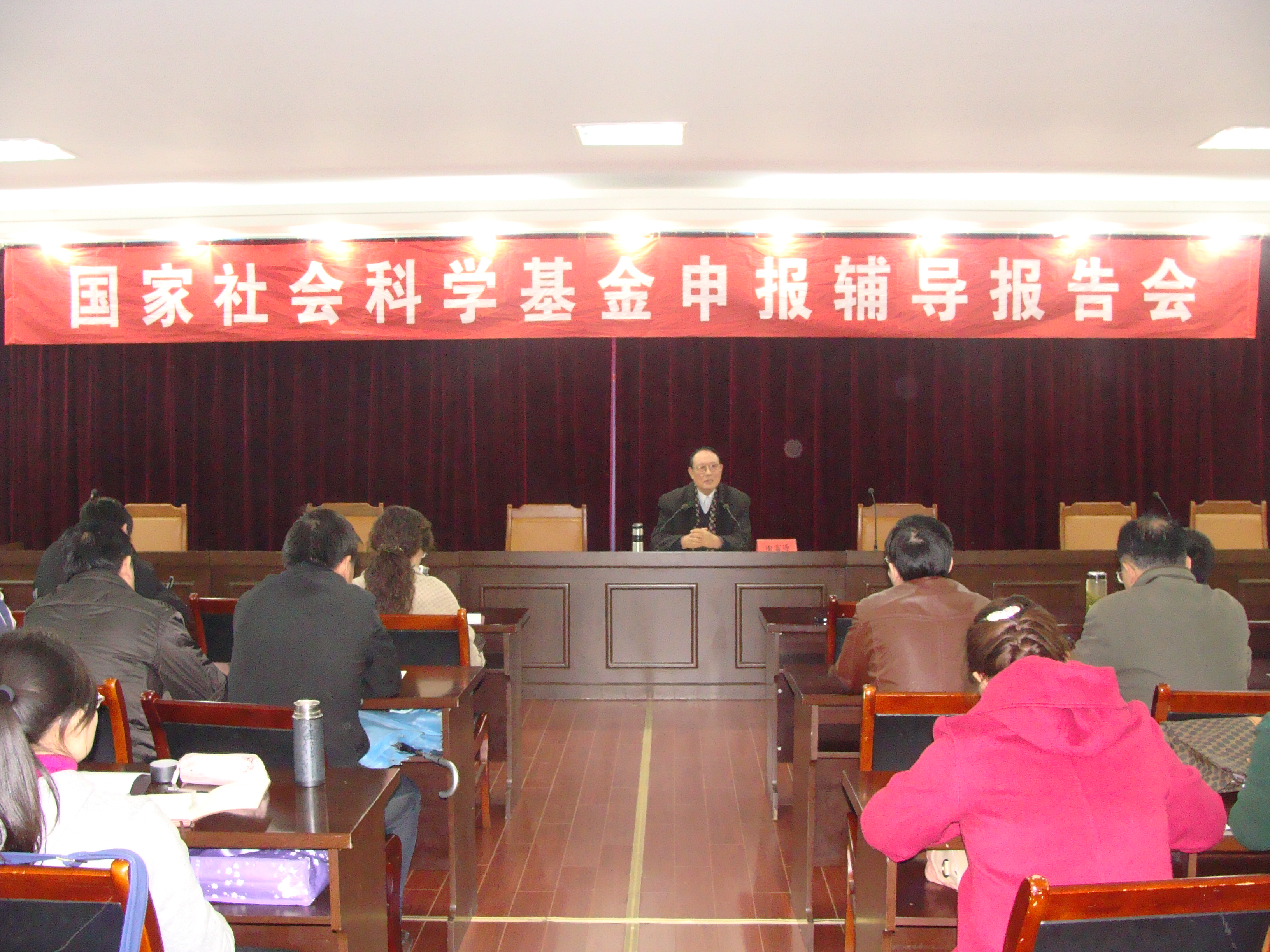 11月22日下午,国家社科基金会评专家、全国“五一”劳动奖章获得者、全国模范教师、安徽十大杰出教师、安徽师范大学博士生导师陶富源教授应邀来我校作了2013年度国家社会科学基金项目申报辅导报告,报告会由科技处处长江明教授主持,文科学院相关负责人和文科专业背景的部分教师参加了报告会。