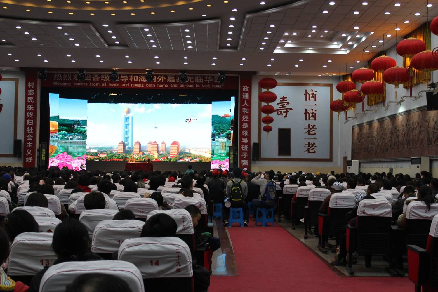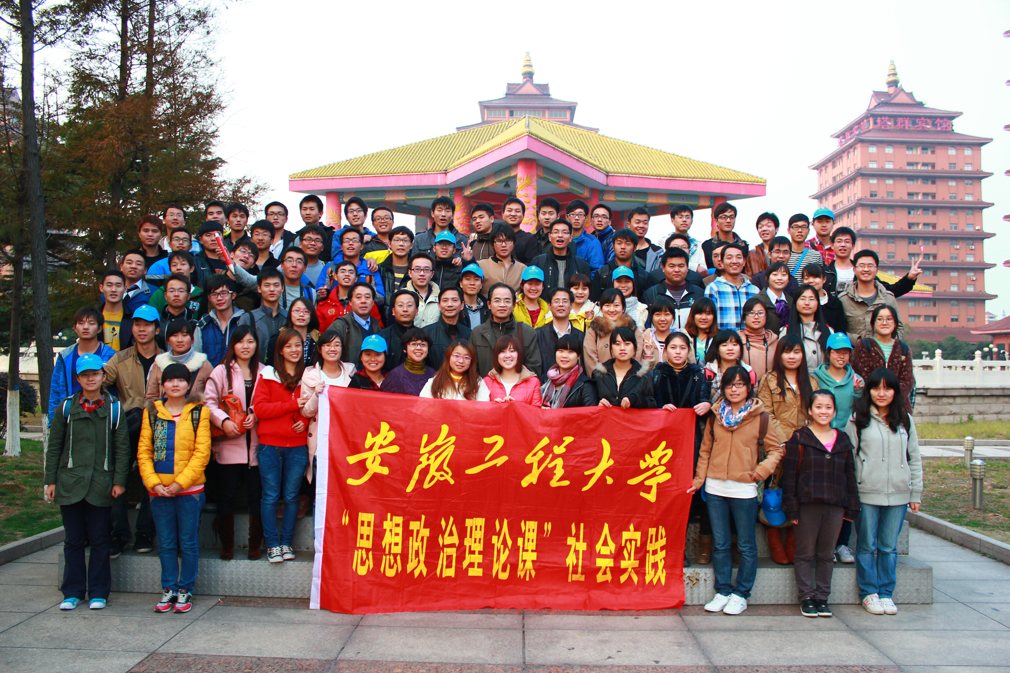 在党的十八大胜利闭幕之际,我校师生近160人在思政部李卫华书记的亲自带领下于2012年11月17日赴江苏江阴华西村实地考察一天。尽管出发时天空中下着小雨,师生们的热情丝毫不减,经过四个多小时的行程,到了有“中国第一村”称谓的华西村。