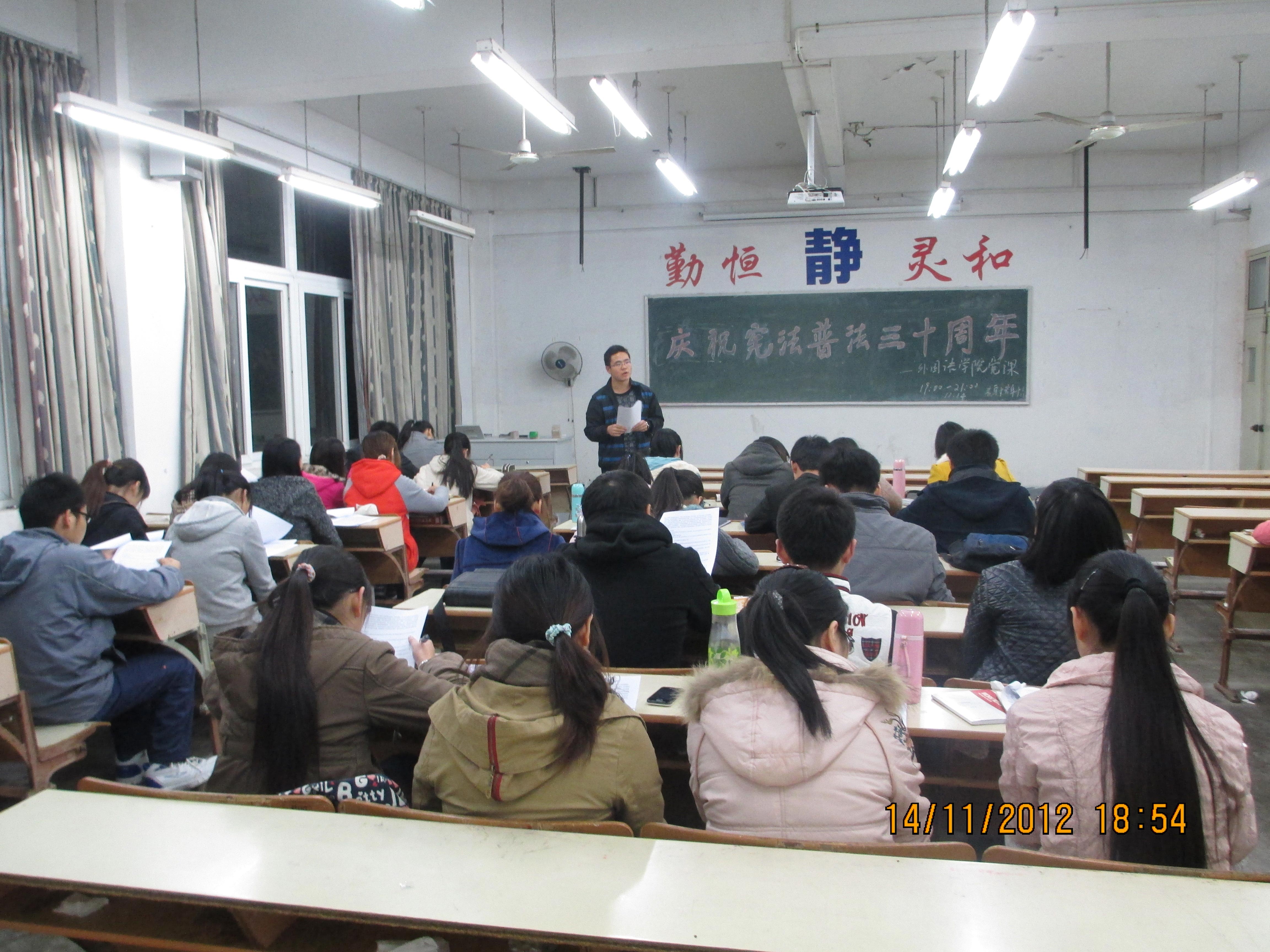 11月15日晚7点,外国语学院分党校第十一期党课教育培训班开展现行宪法学习讨论活动。