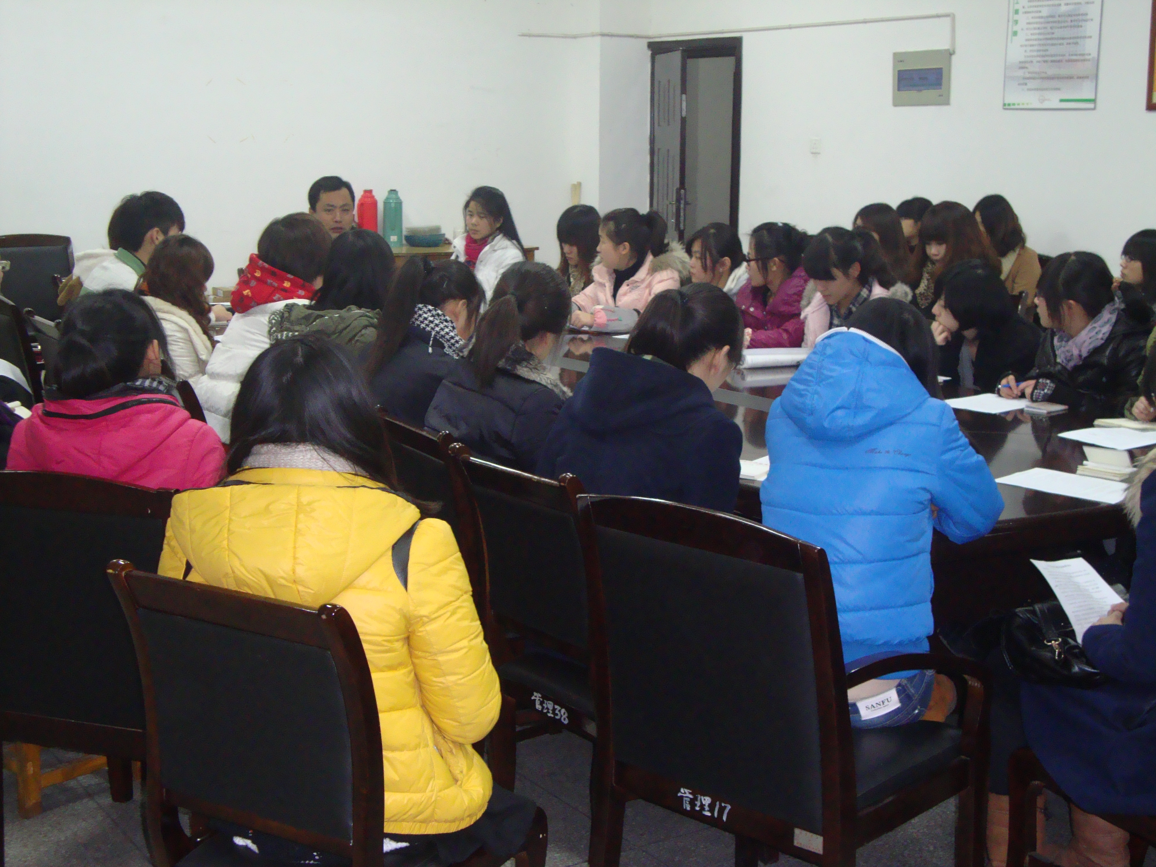 会议伊始,团委副书记沈明领首先带领各班级团支部书记共同学习了胡锦涛总书记十八大全文中“关注青年、关心青年、关爱青年”的讲话精神。随后,沈明领对学院同学学习党的十八大精神、开通班级团支部团属微博、主题团日活动、“学习十八大微博正能量”微作品征集大赛、“正青春·巨能量”演讲比赛等活动进行了具体的安排。