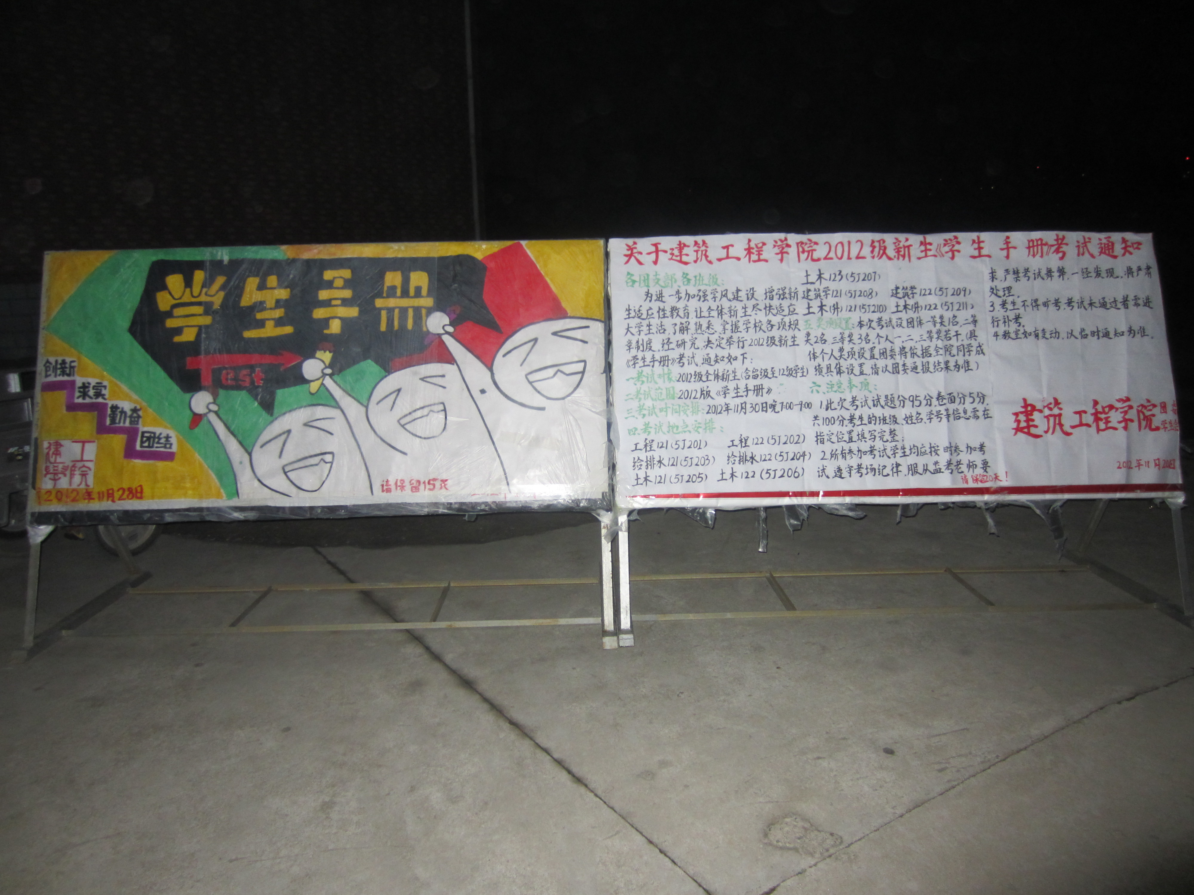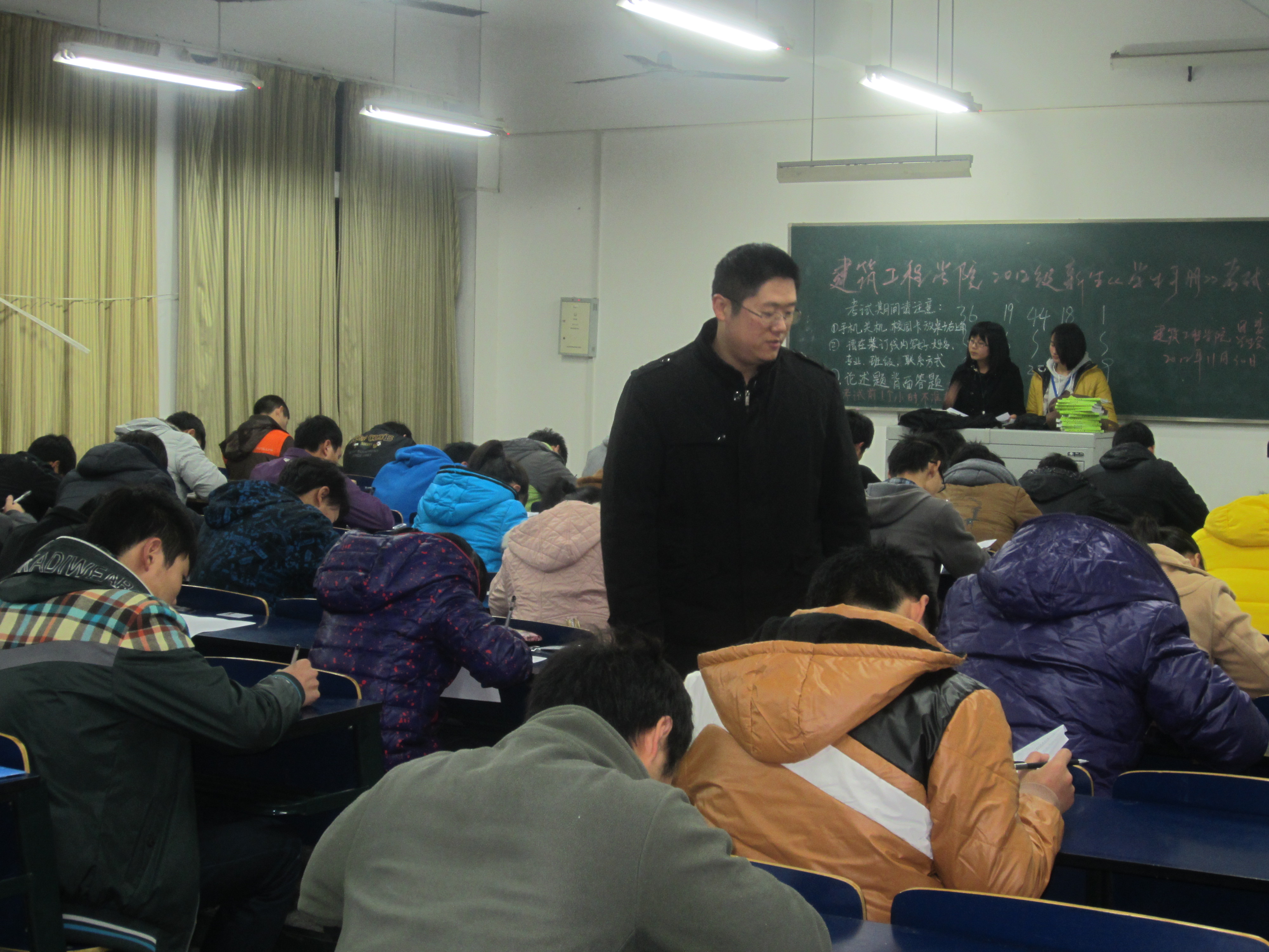 11月30日晚上7:00,建筑工程学院在5J二楼举行新生《学生手册》考试,学院全体2012级新生全部参加考试。院团委副书记刘海涛、辅导员赵宏、王昌胜、付晓惠老师到考场巡视,为深入开展我院新生适应性教育做了扎实的工作。