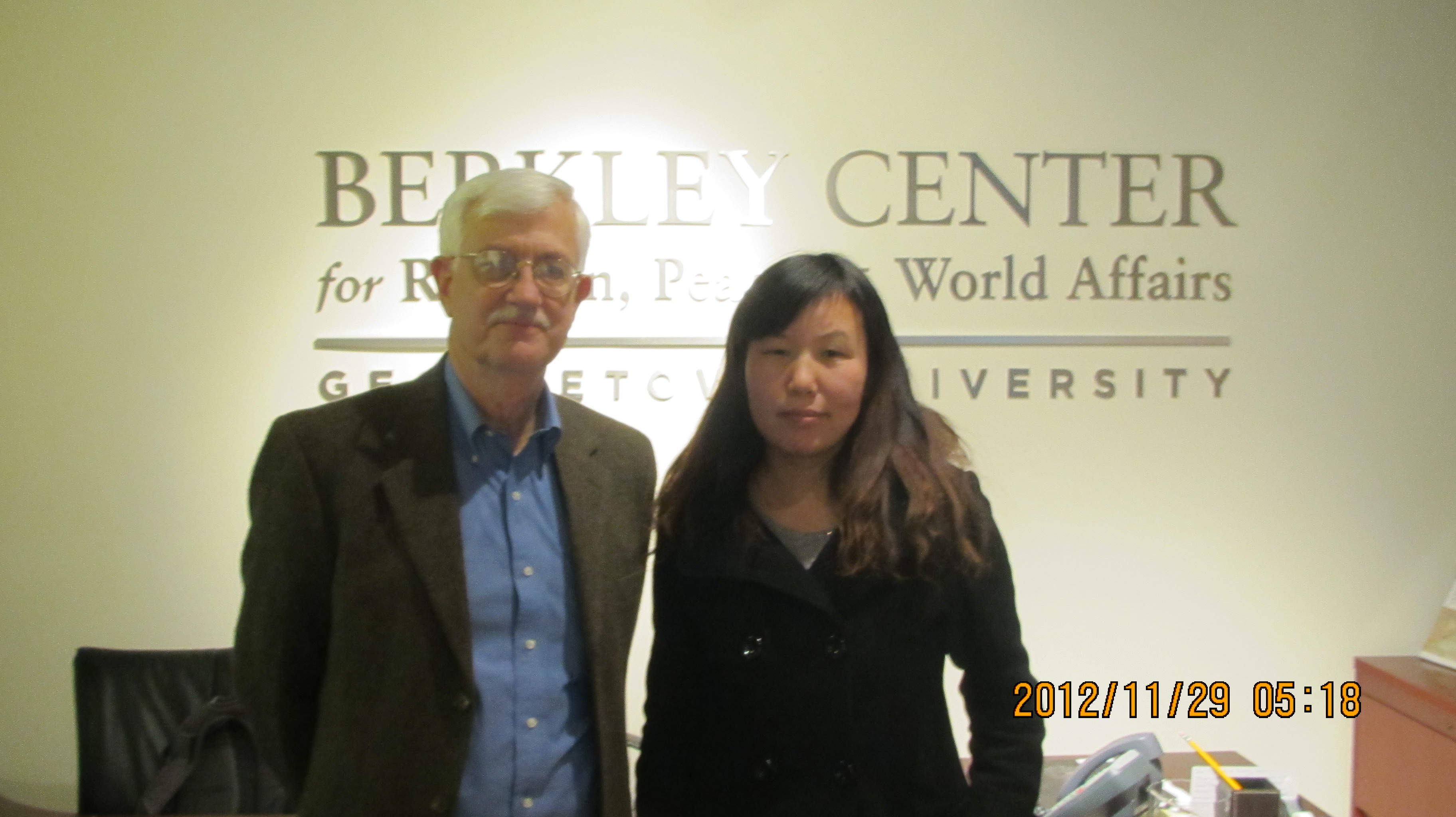 图3:张凤梅老师与乔治城大学伯克利研究中心托马斯·法尔教授合影