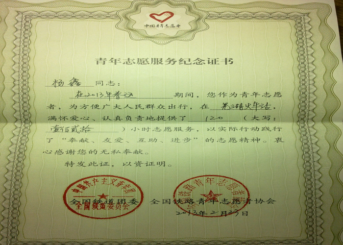 2013年2月15日至2月24日,人文学院“暖途”青年志愿者分队与芜湖火车站联合组织开展了为期11天的春运志愿服务活动,自2006年以来连续8年坚持在春运、寒暑假及各节假日集中开展火车站志愿服务活动,得到了社会各界的广泛好评。 2013年3月1日的《安徽青年报》以《“暖”在旅“途”》为题进行了报道,杨鑫同学还获全国铁道团委和全国铁路青年志愿者协会颁发的青年志愿服务纪念证书。