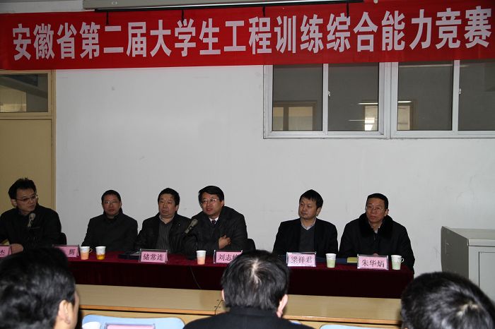 该项赛事是“第三届全国大学生工程训练综合能力竞赛”的省级赛,由省教育厅主办、合肥工业大学承办,共有来自全省10所高校的27支参赛队伍参赛,比赛围绕“无碳小车”为主题,分为方案论证、结构设计、成本分析、生产管理、现场测试、现场答辩等竞赛环节,综合考察学生理论、设计、工艺、成本、管理、检测、操作和表达等多方面的分析解决实际问题的能力以及“大工程”理念下的综合素质。