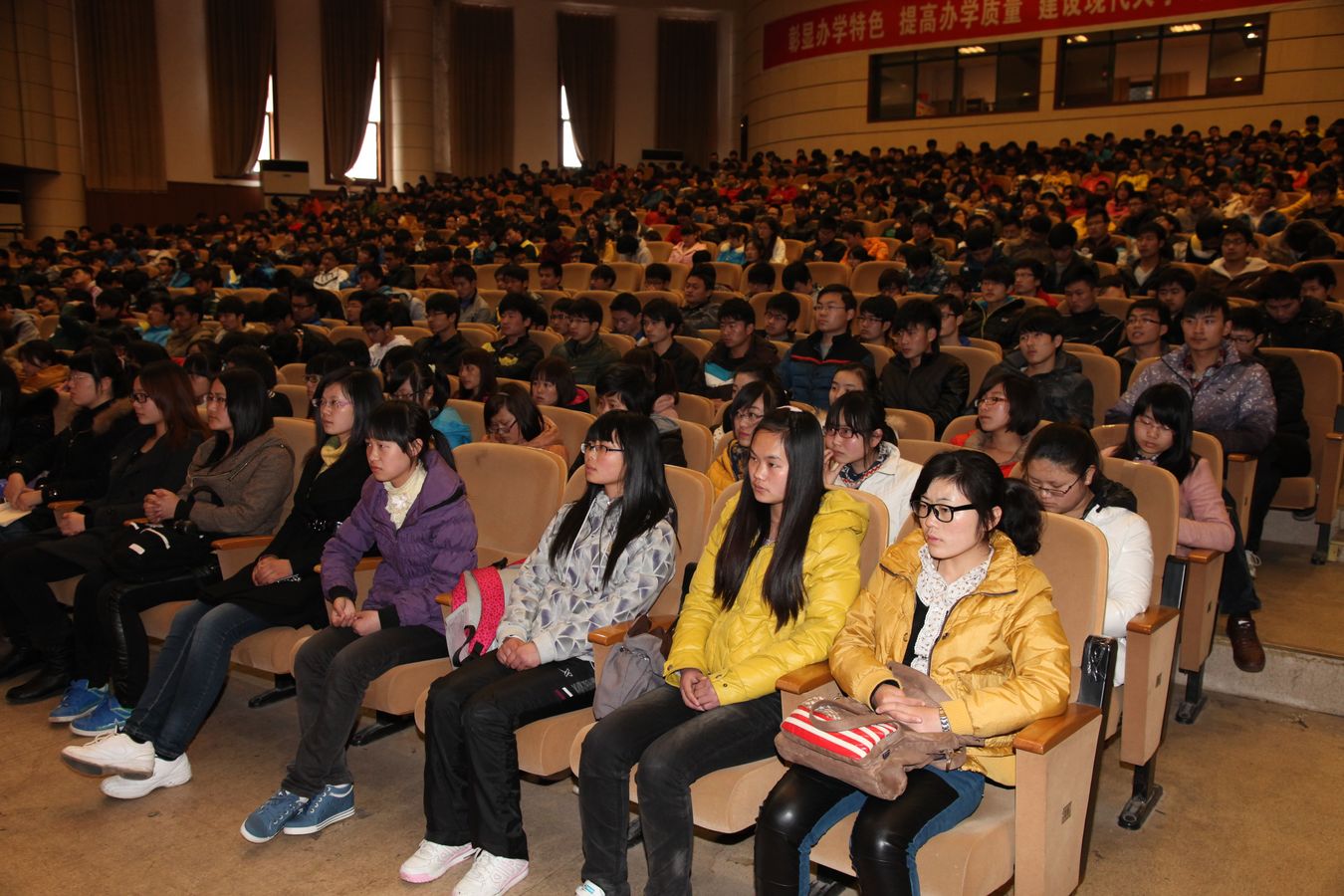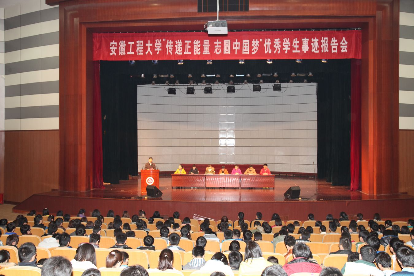 春意盎然,生机勃勃。3月13日下午,学校师生活动中心大礼堂座无虚席,掌声不断,由学生处举办的校“传递正能量、志圆中国梦”优秀学生事迹巡回报告会正在进行。副校长李震出席会议并讲话。学生处处长王河、相关学院分管书记和辅导员参加报告会,纺服学院、生化学院、外国语学院1100余名新生聆听了报告。