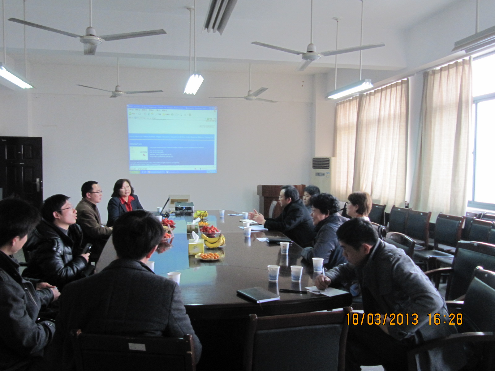2013年3月18日泰国宋卡王子大学农工学院院长帕薇妮教授来生化学院进行学术交流,研究生部副主任蔡昌凤教授、学院党委副书记章兵、生工、生技、食品、环境专业部分教师参加了交流会,会议由学院副院长陶玉贵教授主持。