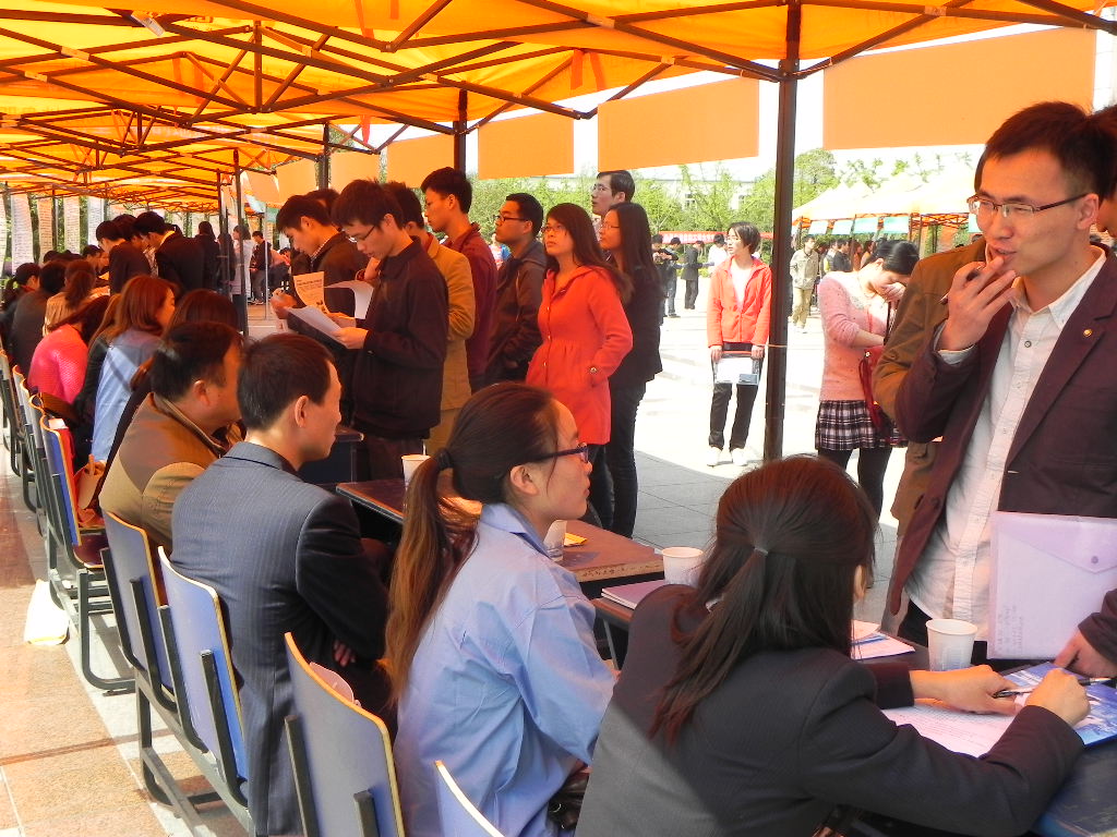 招聘会期间,在学生处处长王河和副处长李卫东的陪同下,副校长李震来到现场与企业、毕业生见面洽谈,督查指导工作,并与黄维群一行就校地、校企合作进行了交流。