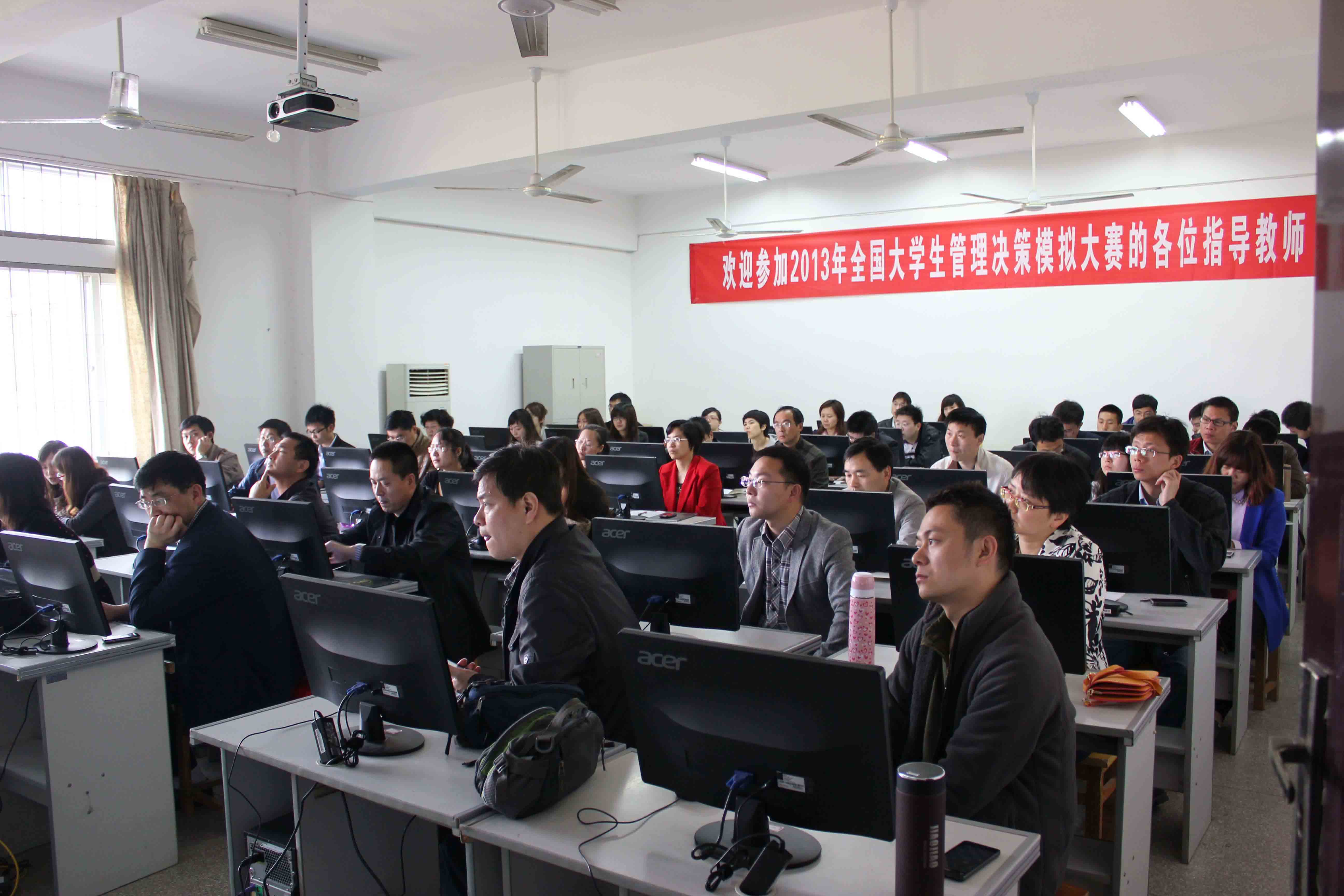 4月13-14日,2013年全国大学生管理决策模拟大赛指导教师培训会在我校成功举办。本次培训会由全国管理决策模拟大赛组委会主办,安徽工程大学管理工程学院承办,经过主办方和承办方的宣传和精心组织,吸引了来自兰州大学、内蒙古财经大学、浙江工商大学、重庆工商大学、上海商学院、南京审计学院、安徽工业大学等全国各地近30所高校的50余名指导教师参加。